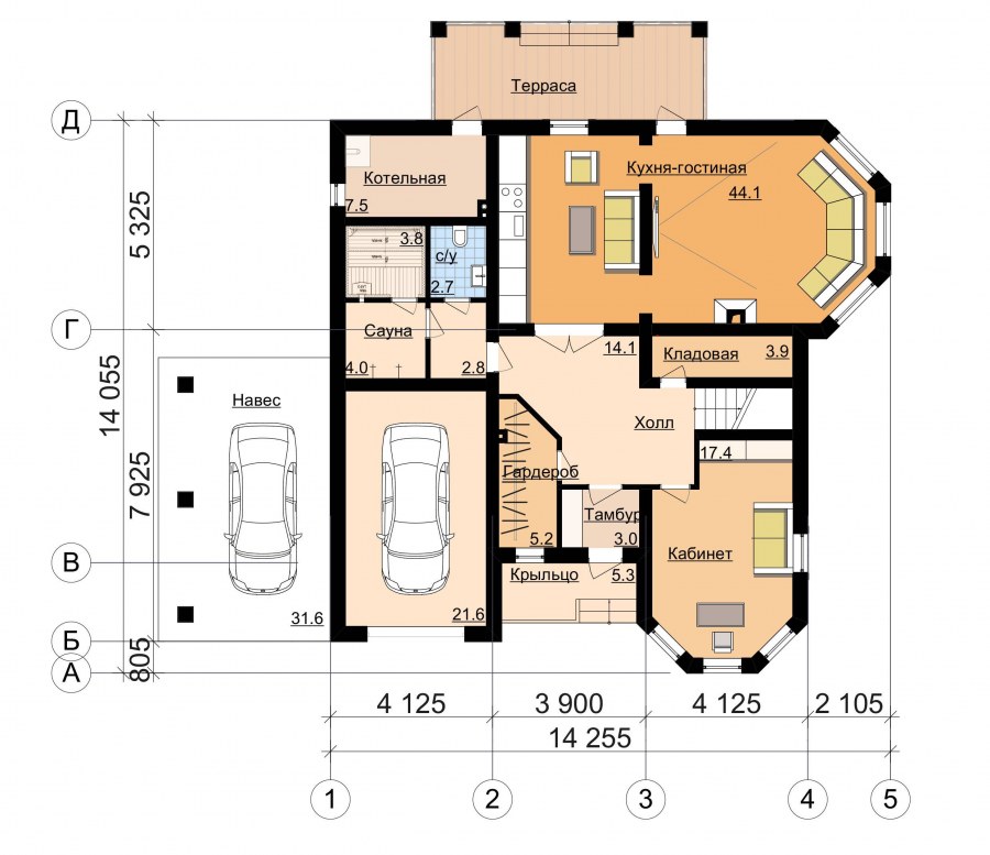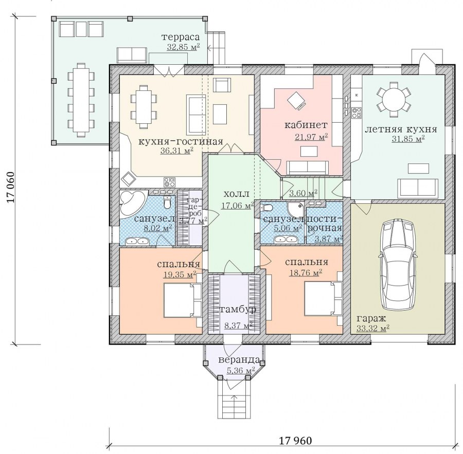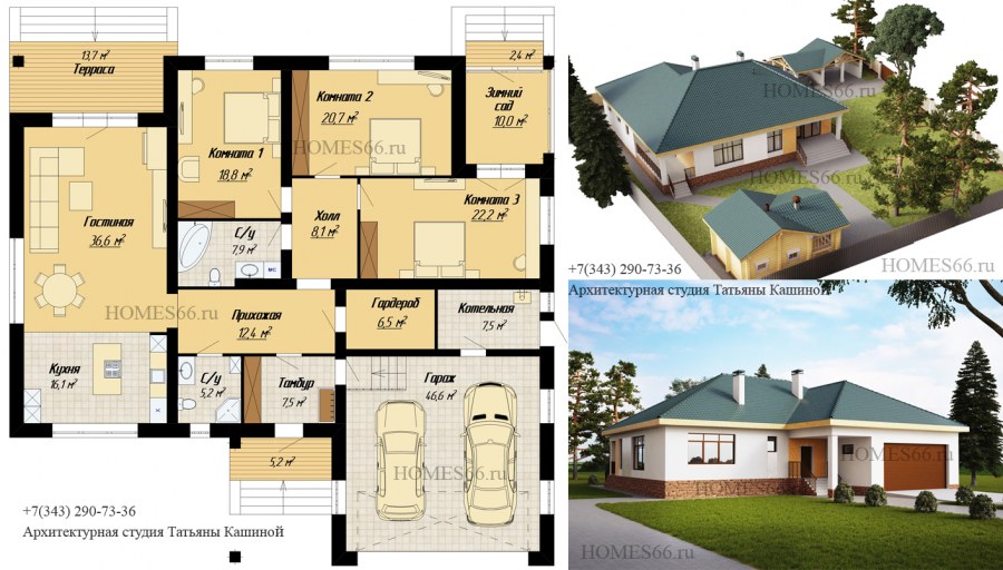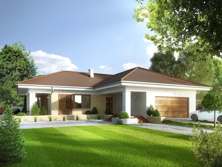 Проекты одноэтажных домов с гаражом и террасой