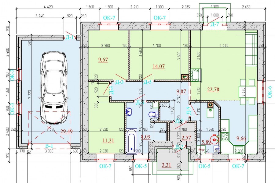 Одно этажный дом с гаражем