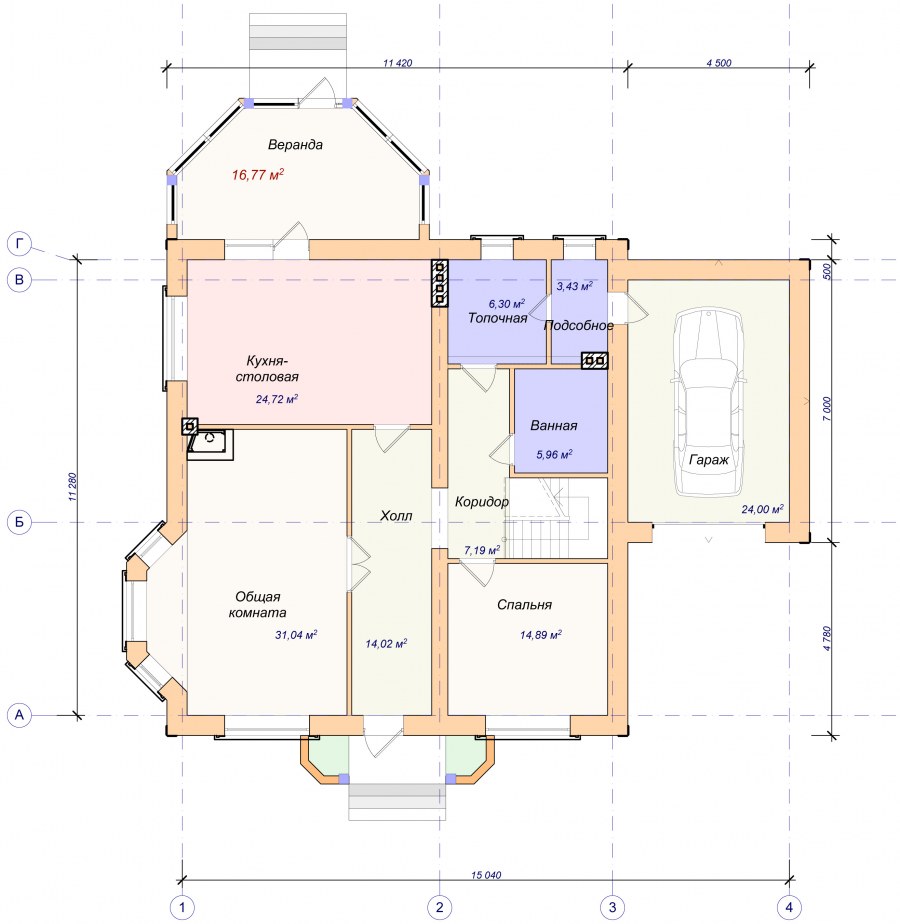 Планы одноэтажных домов с гаражом