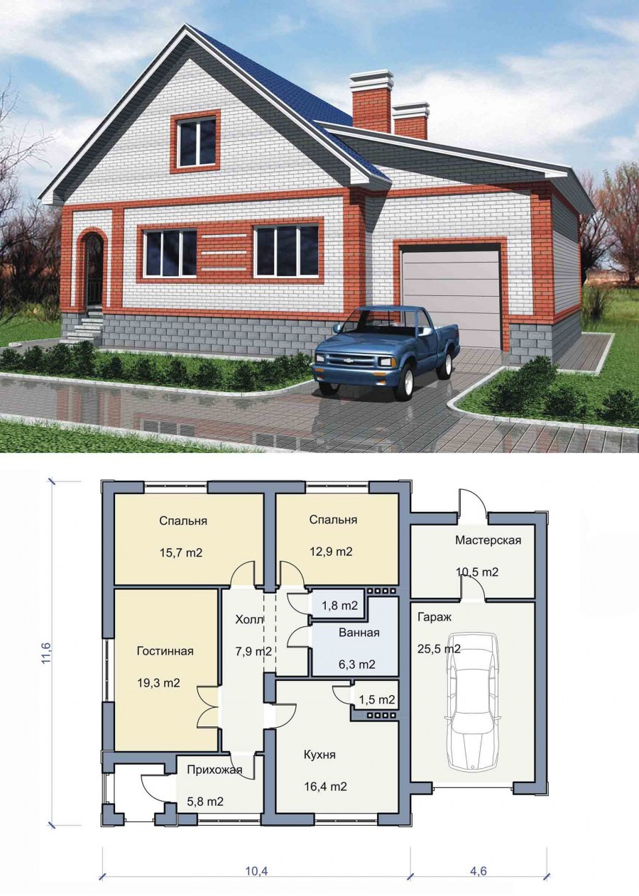Одноэажныйдом с гаражом