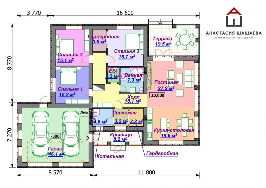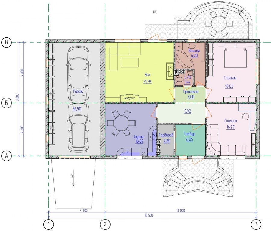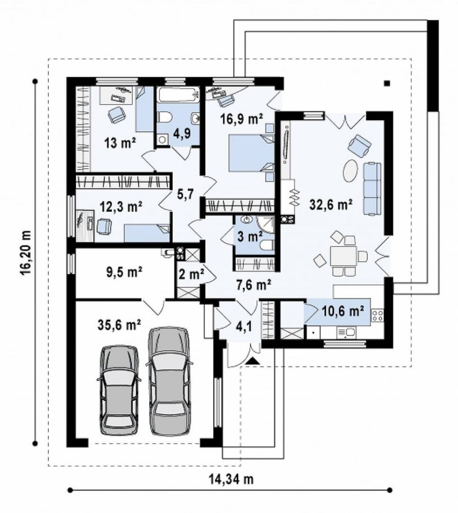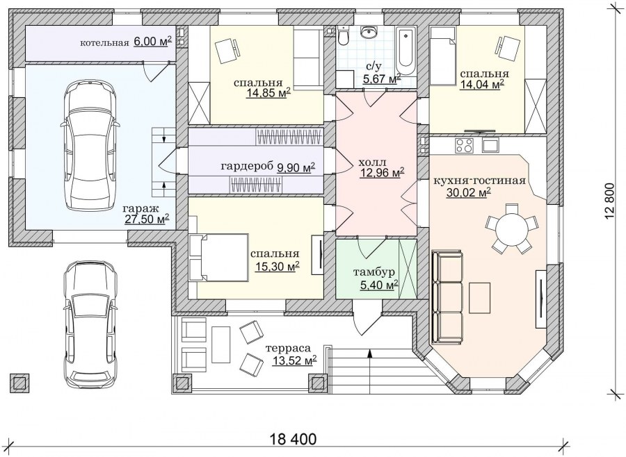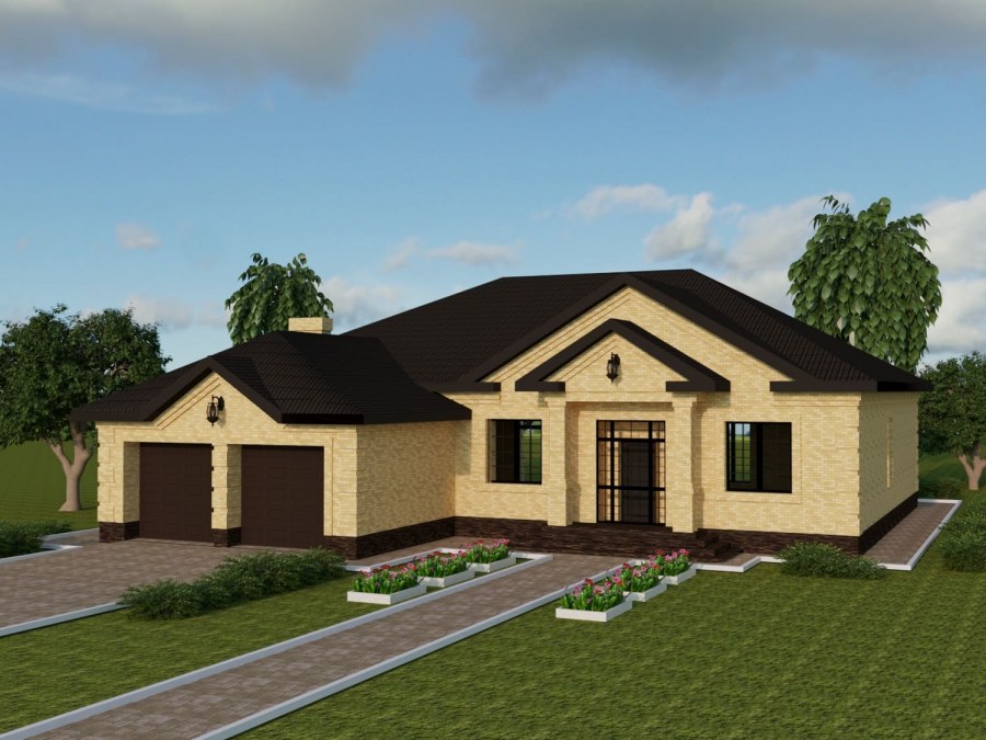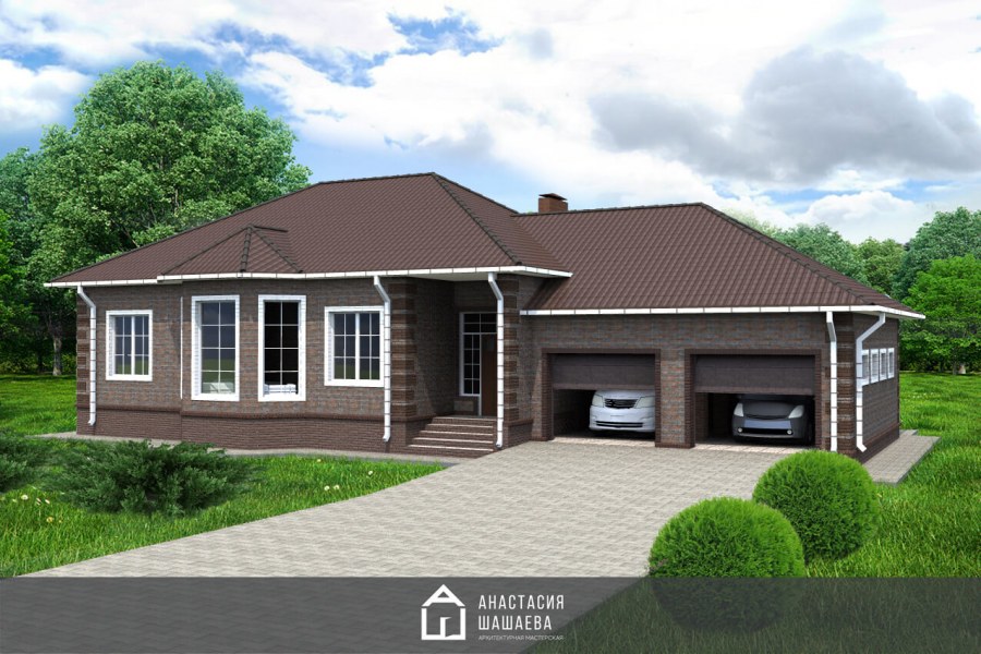 Проекты одноэтажных домов с гаражом на 2 машины