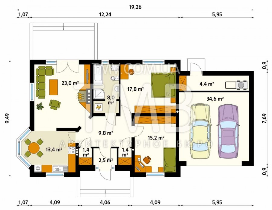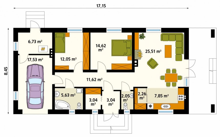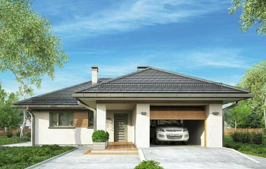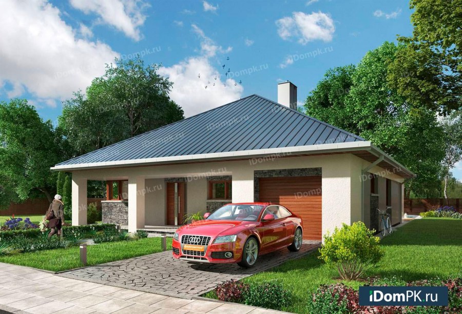 Проект одноэтажного дома с гаражом 100м2