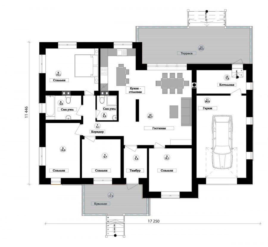 Одноэтажный дом с гаражом