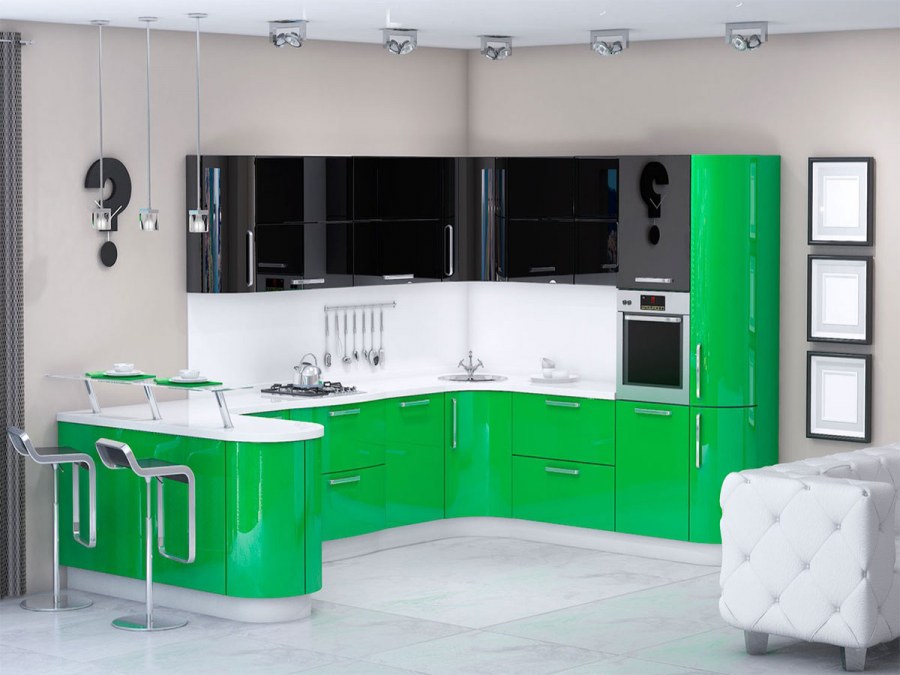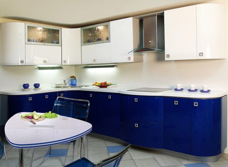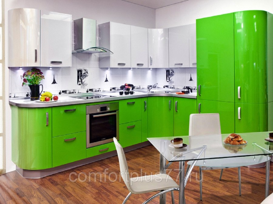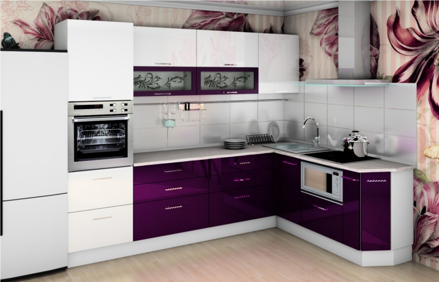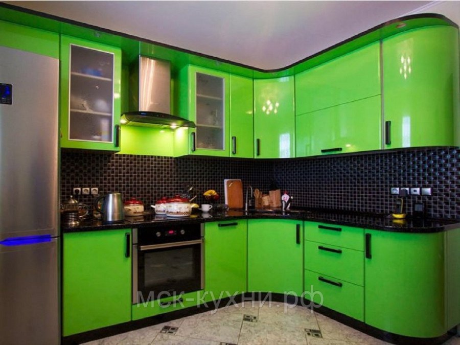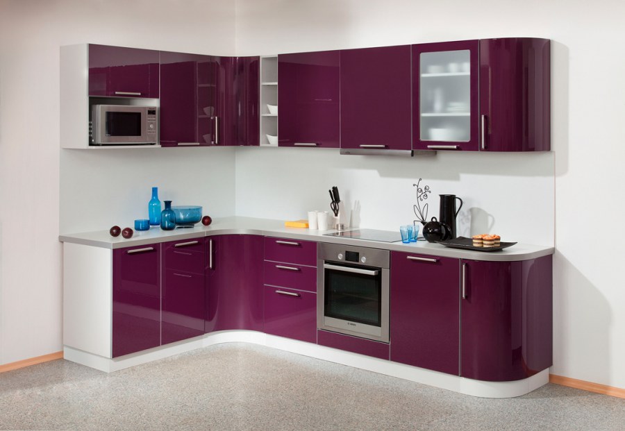 Кухни угловые глянцевые разноцветные современные (71 фото)