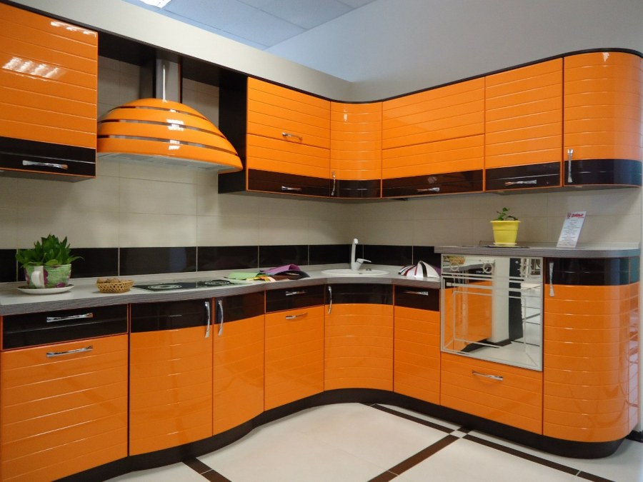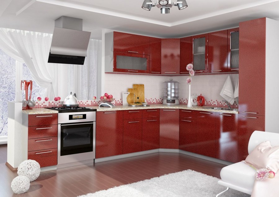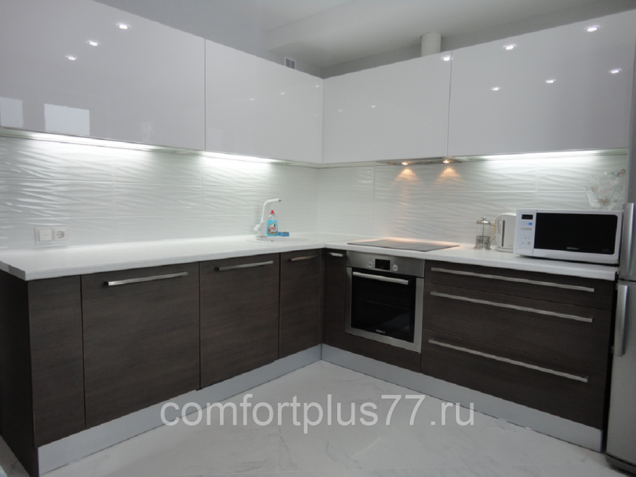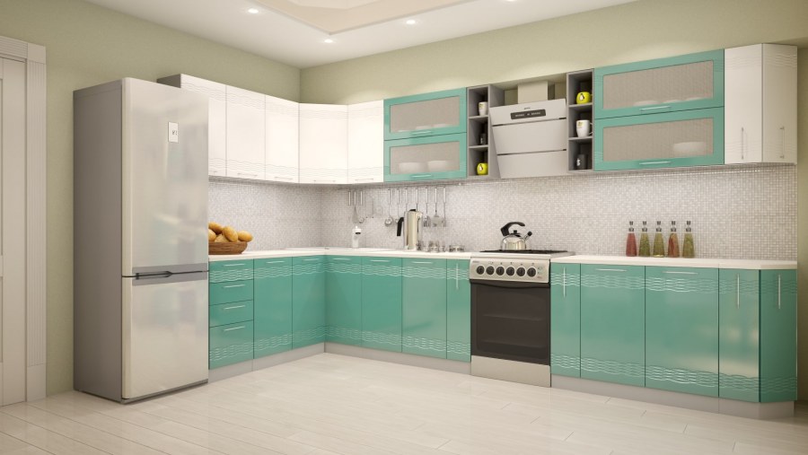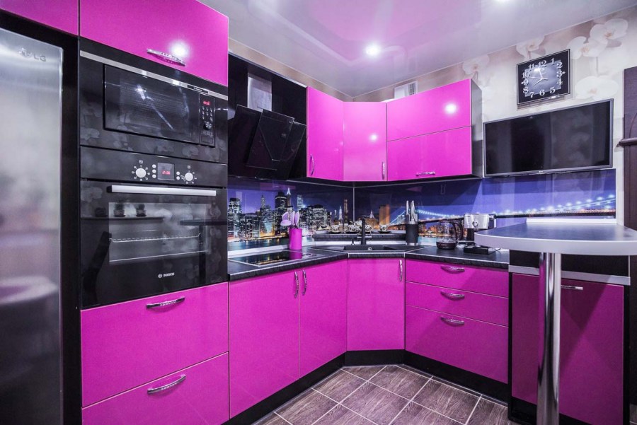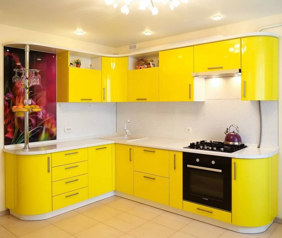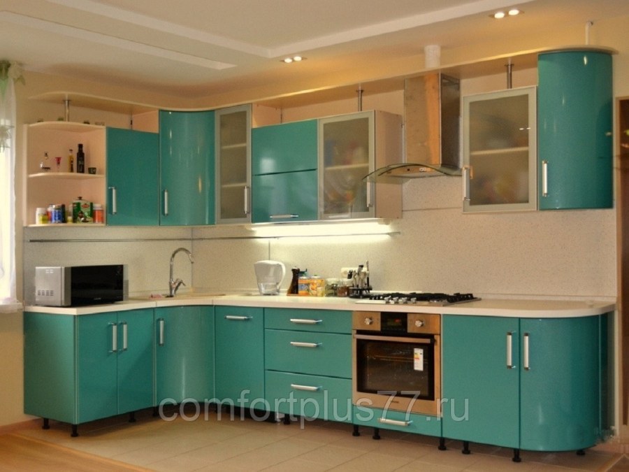 Кухни угловые глянцевые разноцветные современные (71 фото)