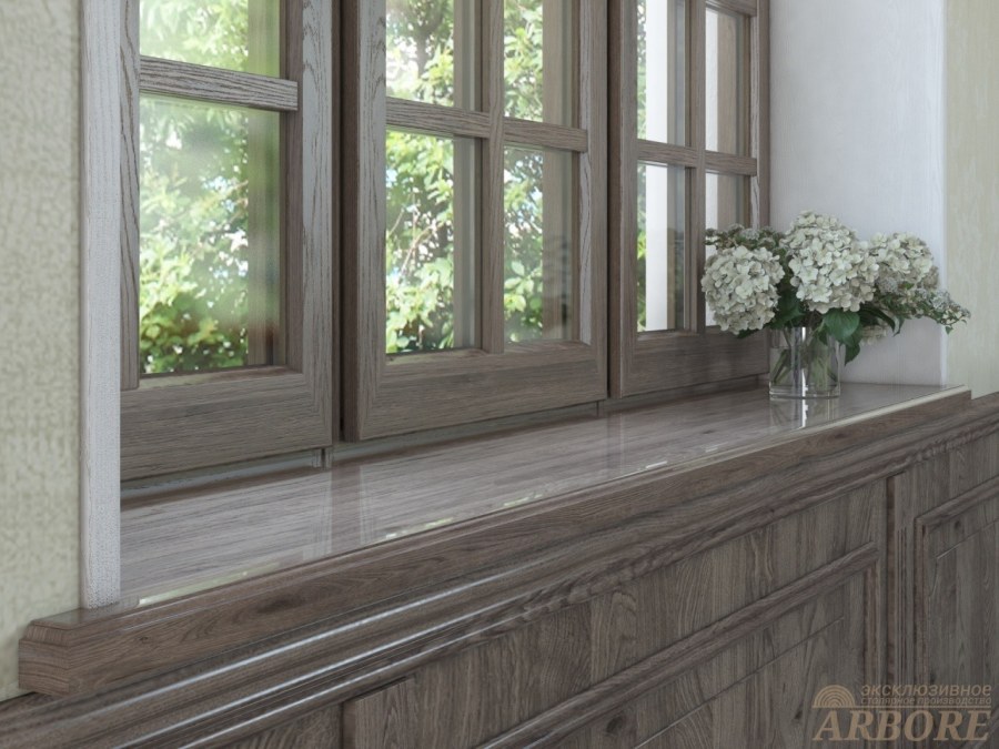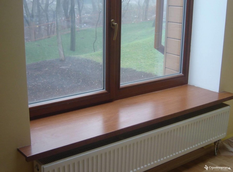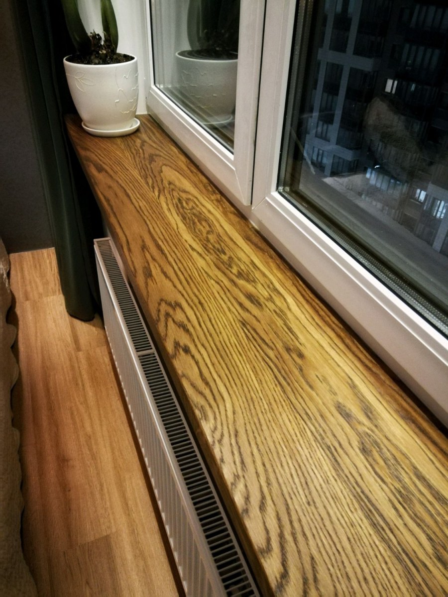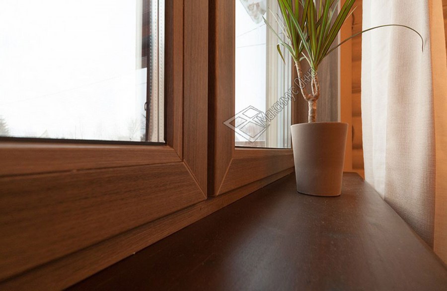 Подоконники под дерево пластиковые в интерьере (73 фото)