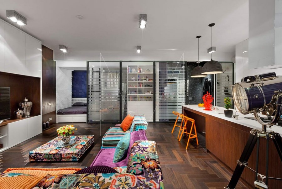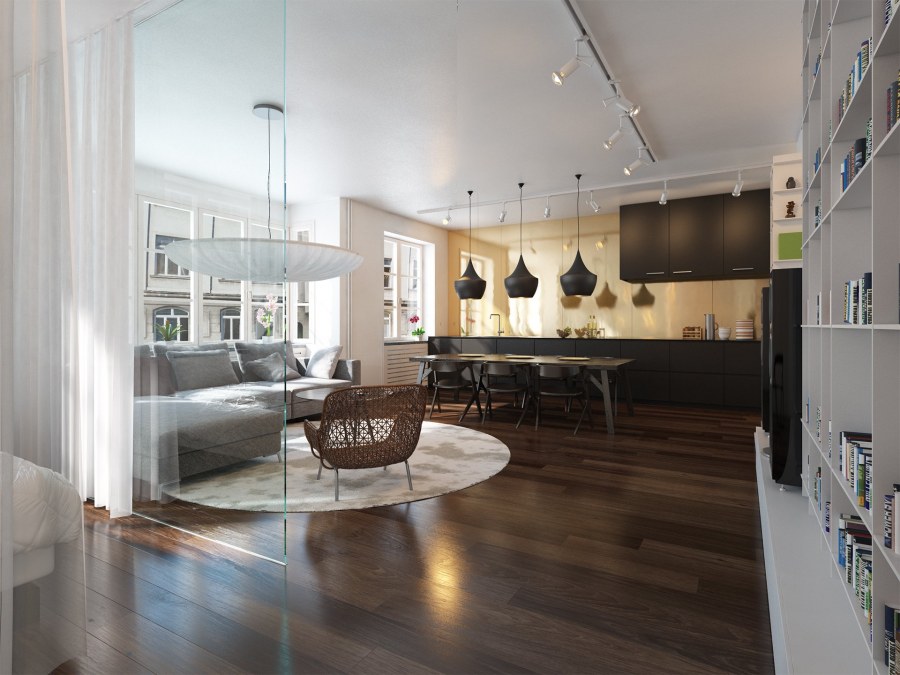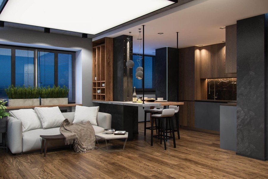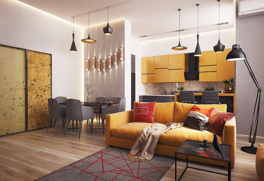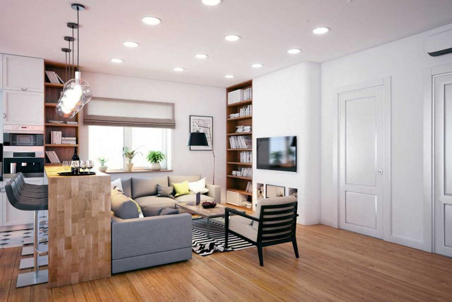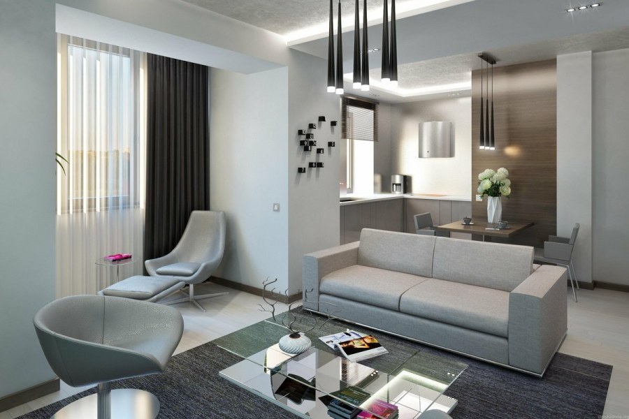 Интерьер гостиной 18 кв.м в стиле Хай-тек