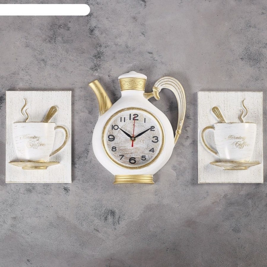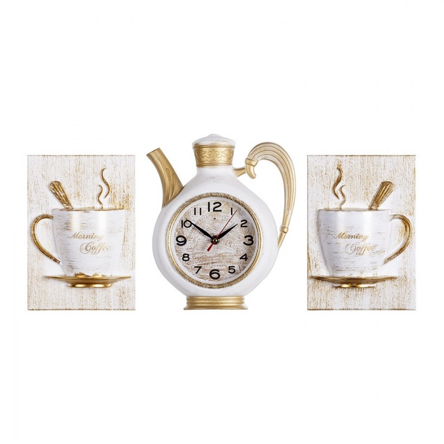Часы настенные 2622+2-002 "чайник+2 чашки" бел. С золотом 26,5*24см