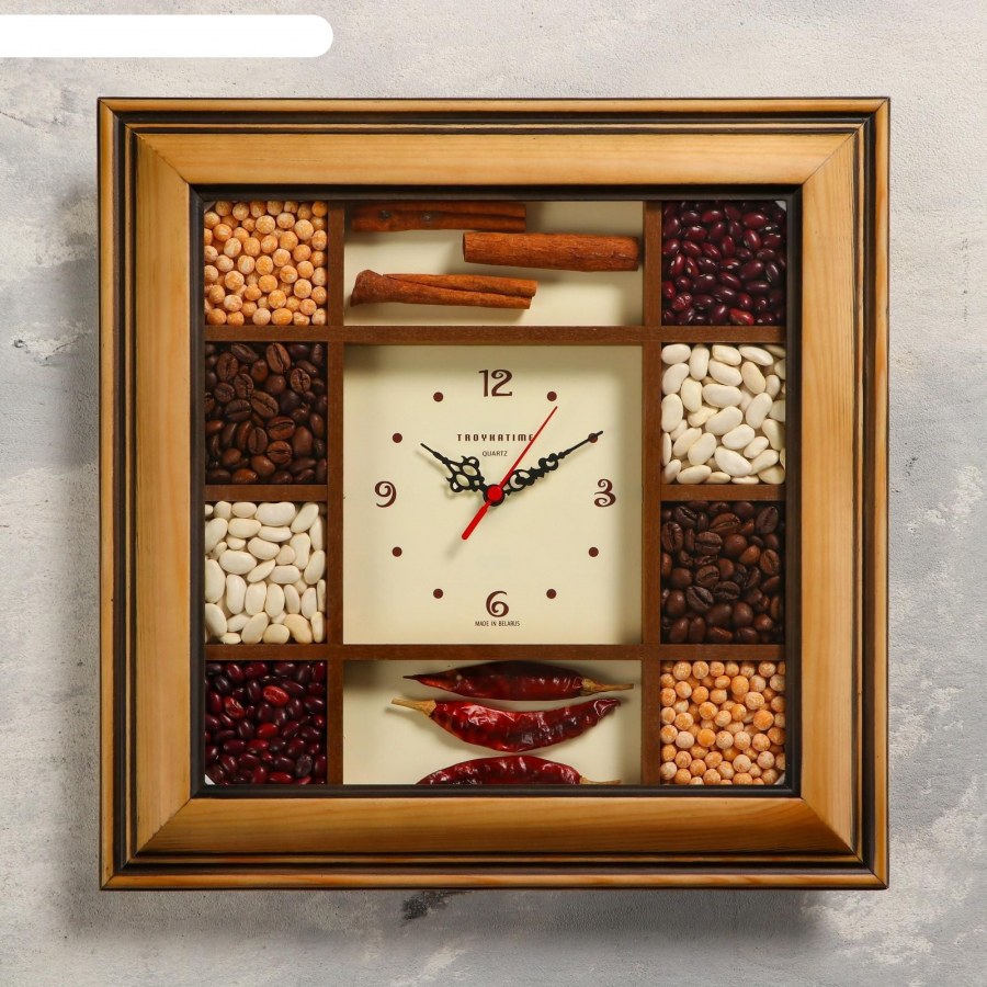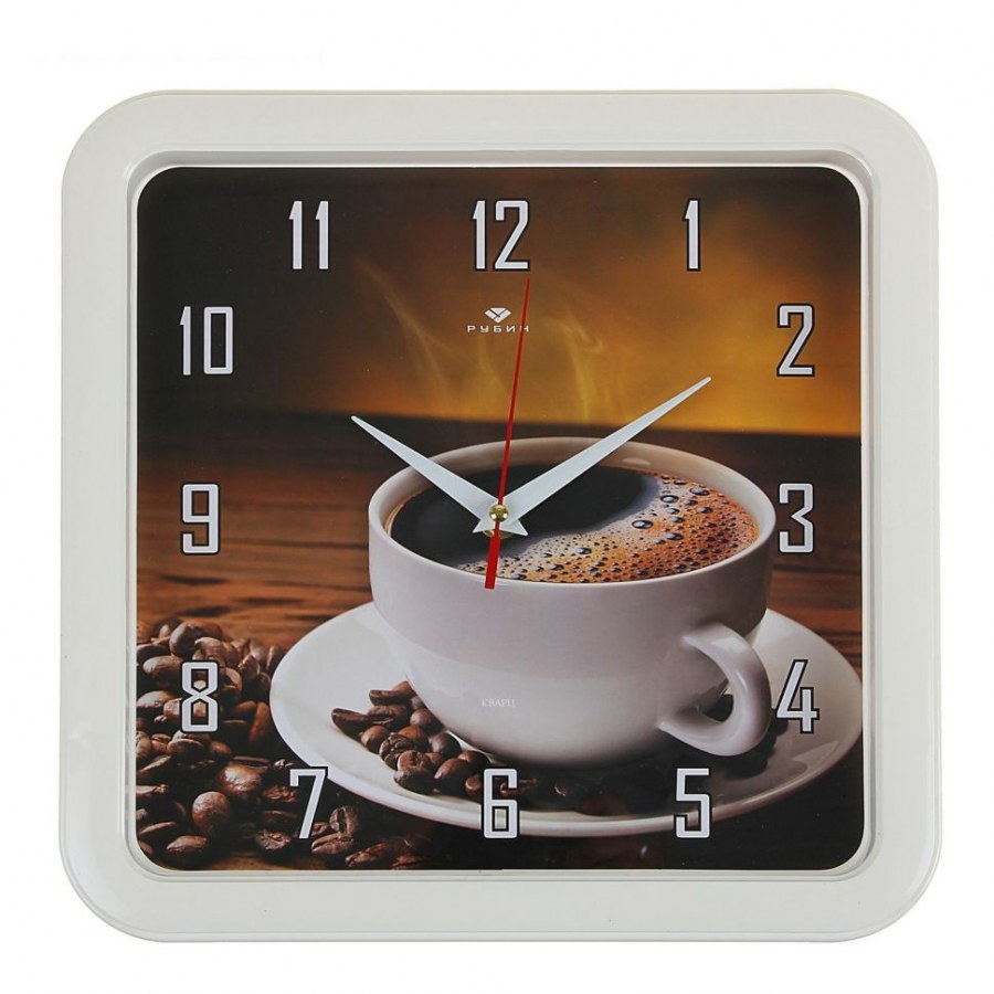 Часы настенные квадратные чашка кофе 30х30 см Рубин