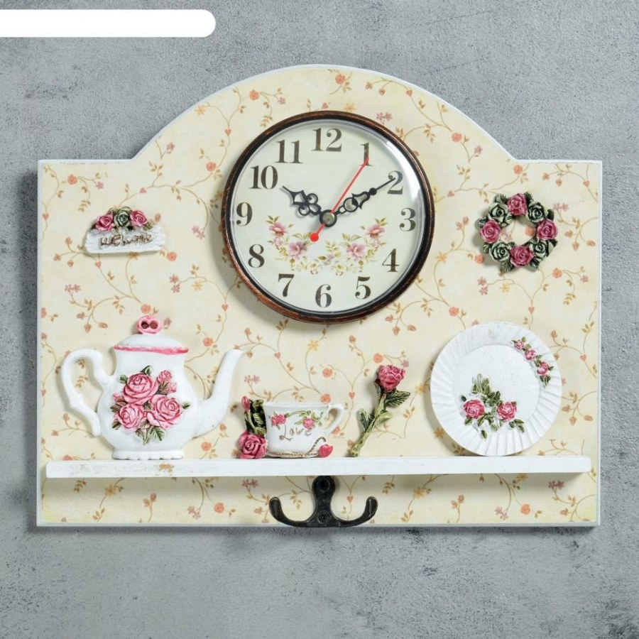Часы настенные, серия: кухня, "целадон", с крючком, 29х23 см