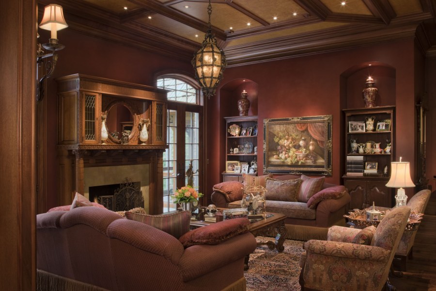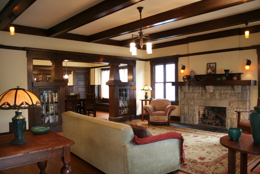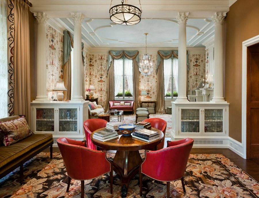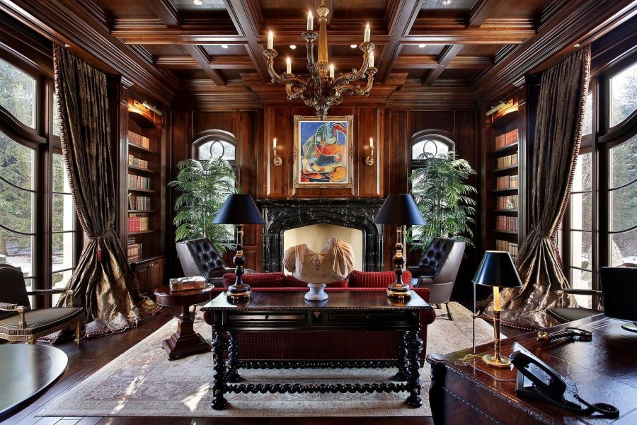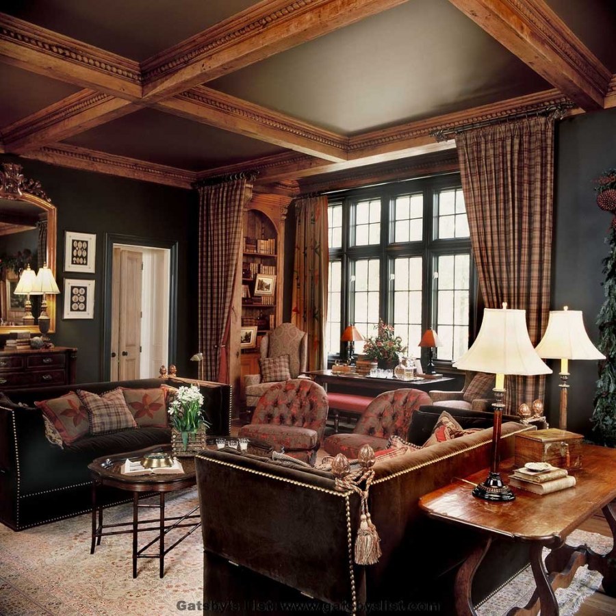 Интерьер в стиле Ральф Лорен с деревянным потолком