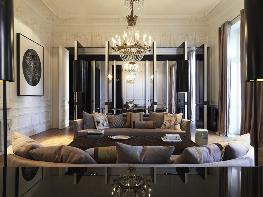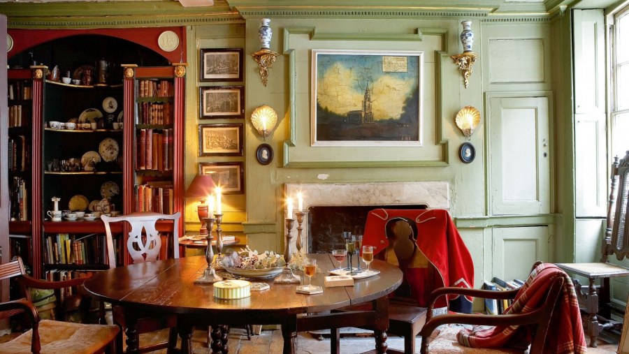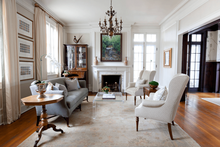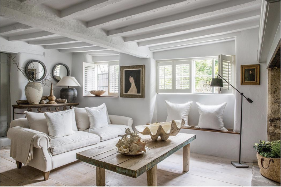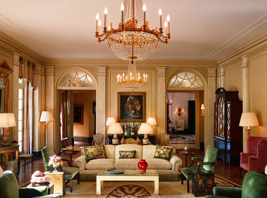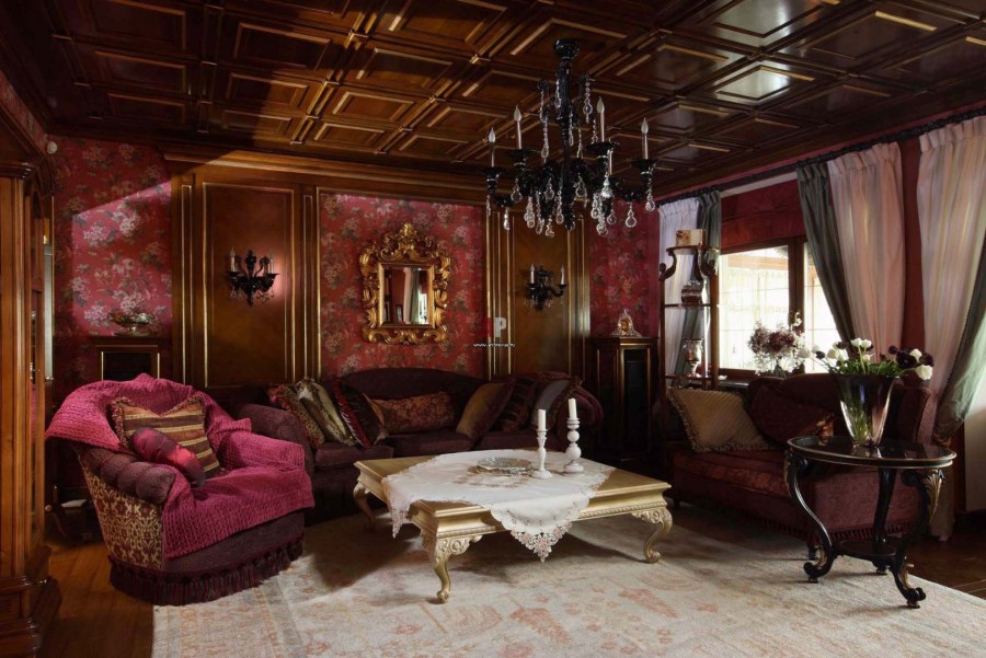 Интерьер в стиле Ральф Лорен с деревянным потолком