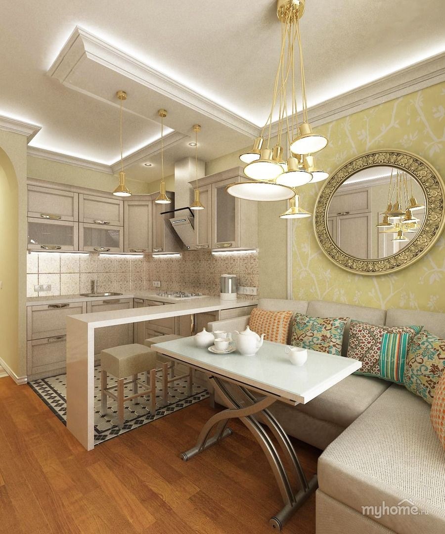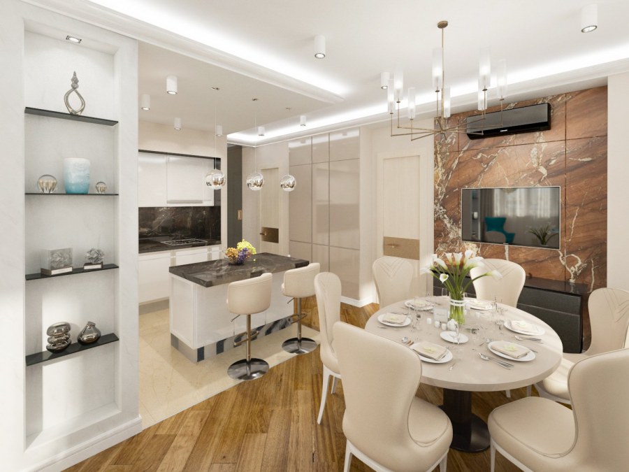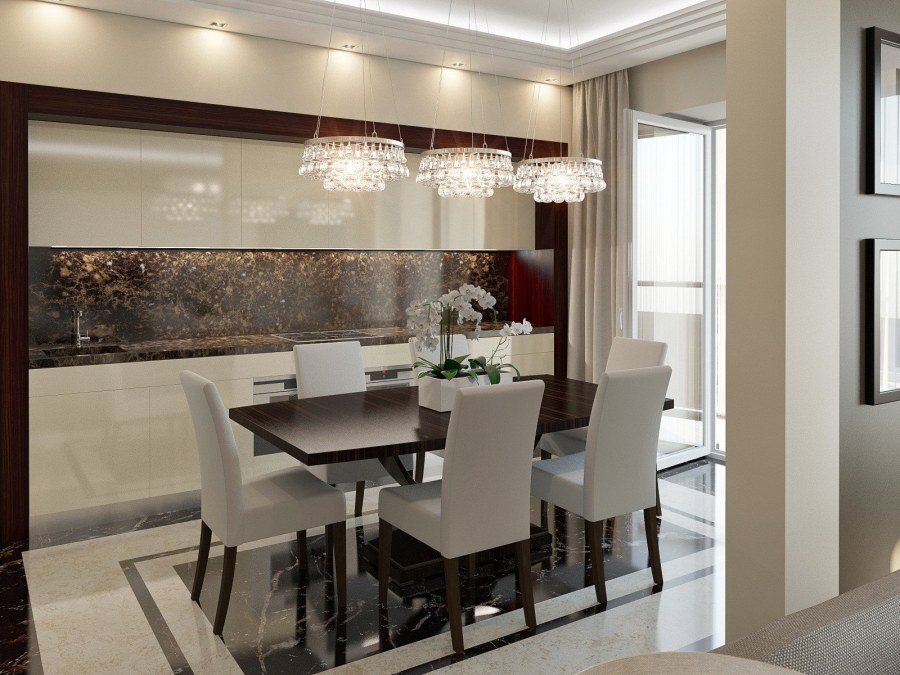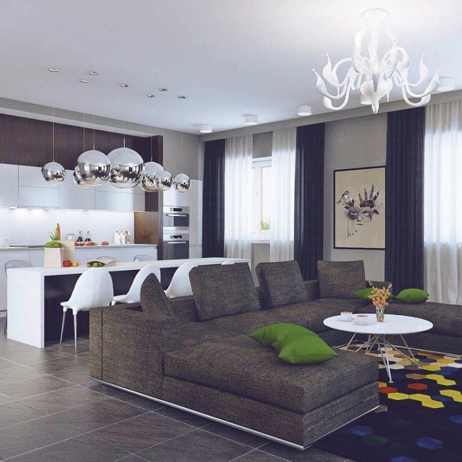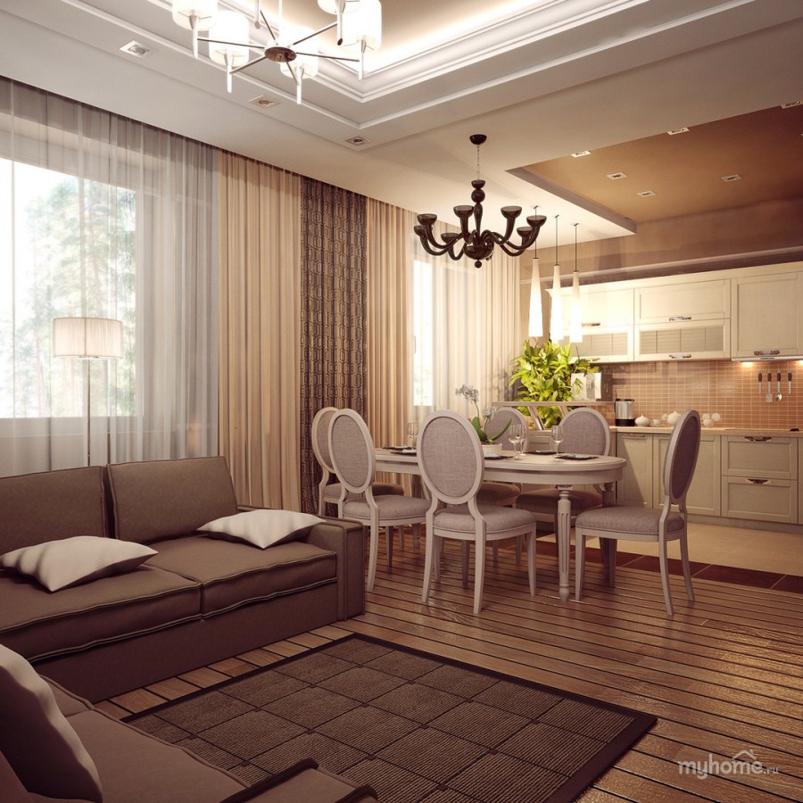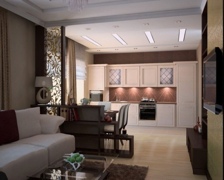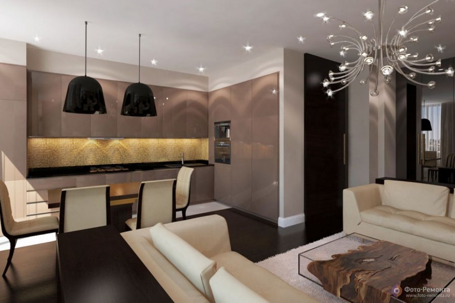 Кухня столовая гостиная дизайн интерьер в квартире (74 фото)