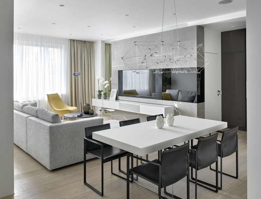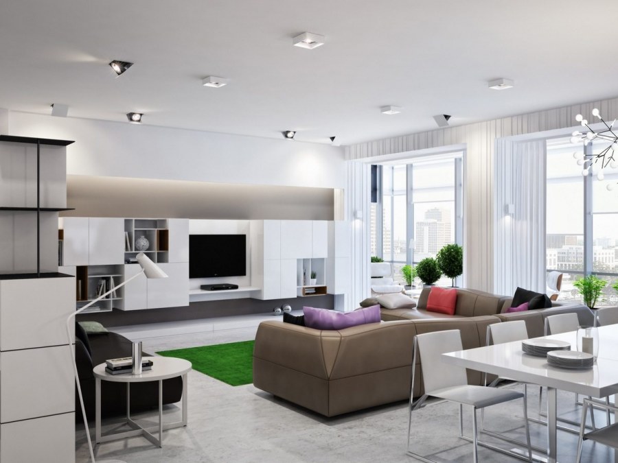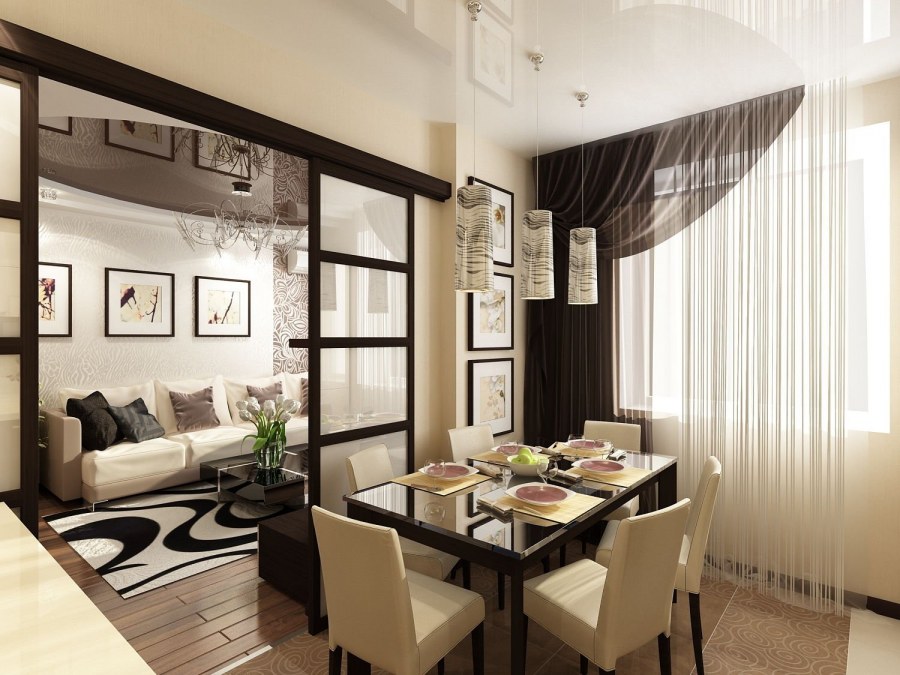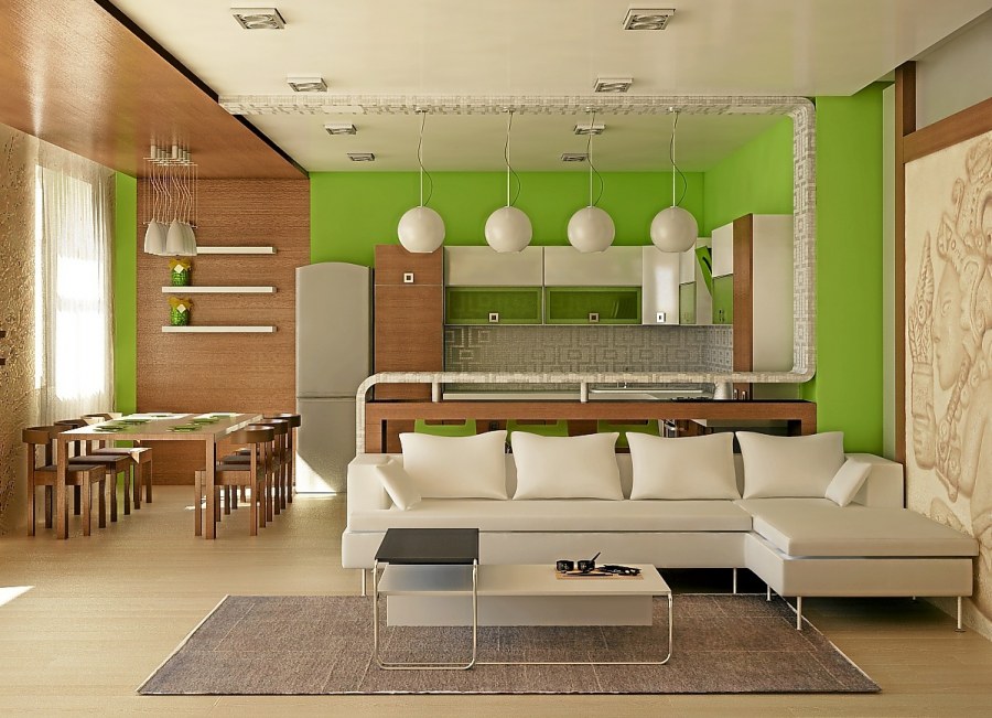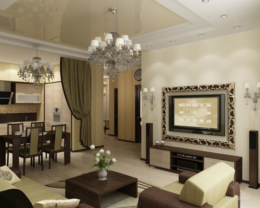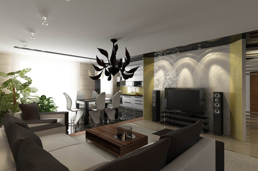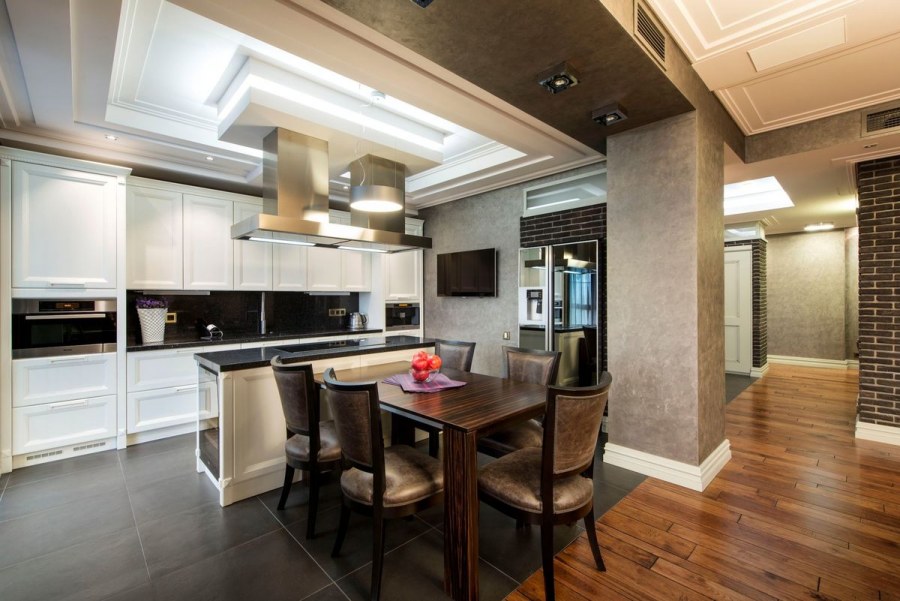 Кухня столовая гостиная дизайн интерьер в квартире (74 фото)