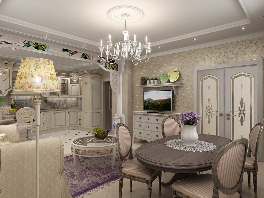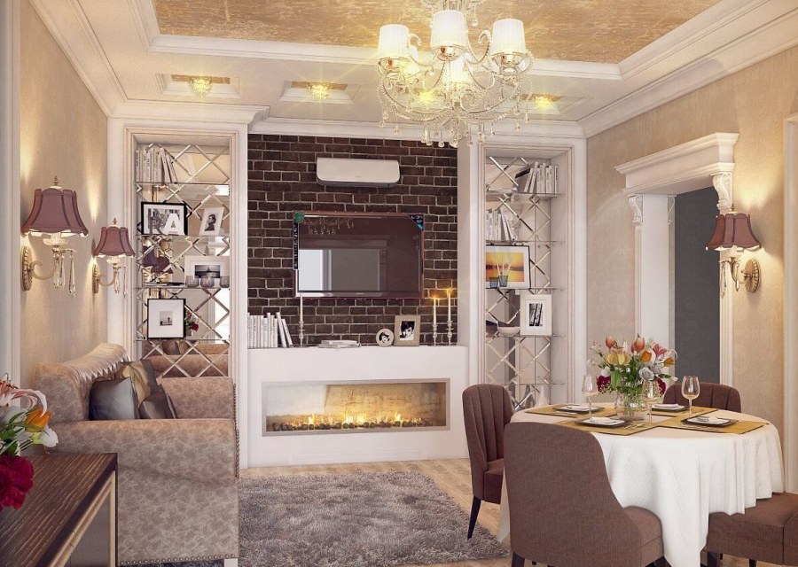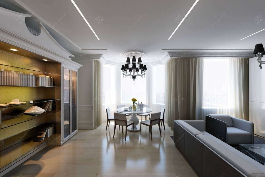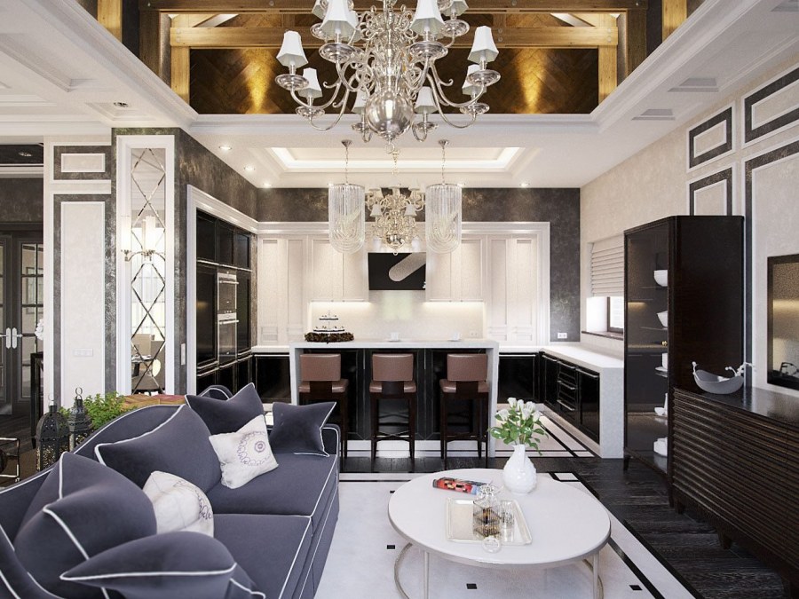 Кухня-гостиная 40 м2 в стиле Неоклассика