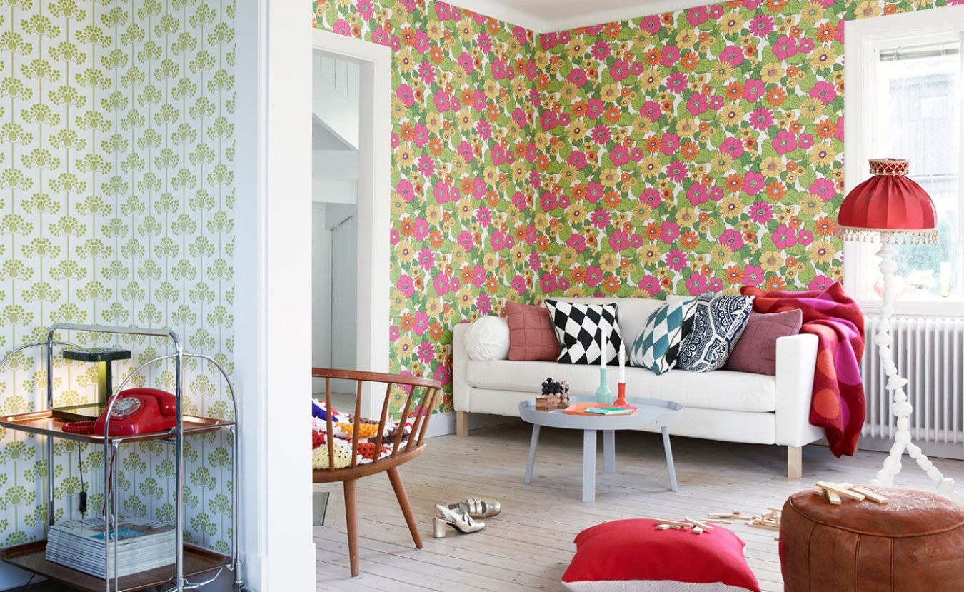 Гостиная с обоями в цветочек