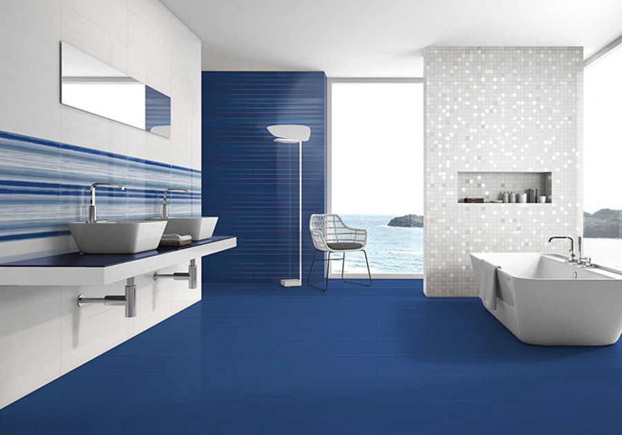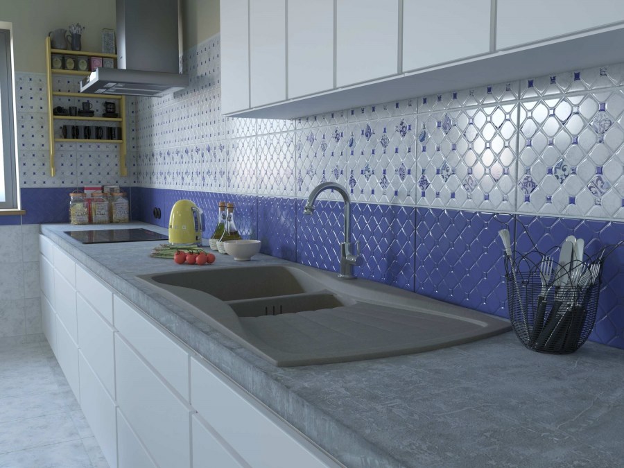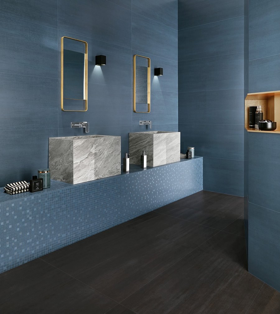 Сине серая плитка в интерьере (71 фото)