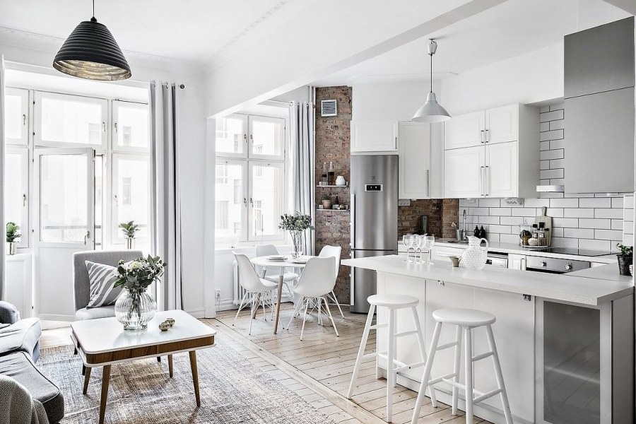 Сканди стиль кухня гостиная