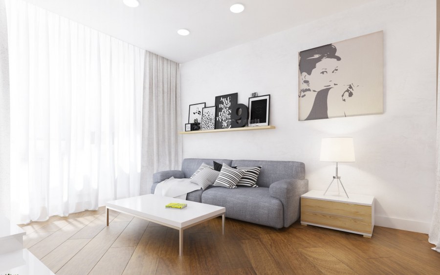 Однокомнатная квартира с белыми стенами