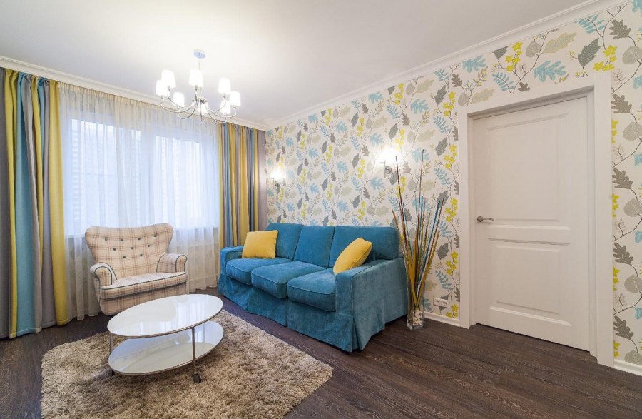 Однокомнатная квартира в желто синих тонах