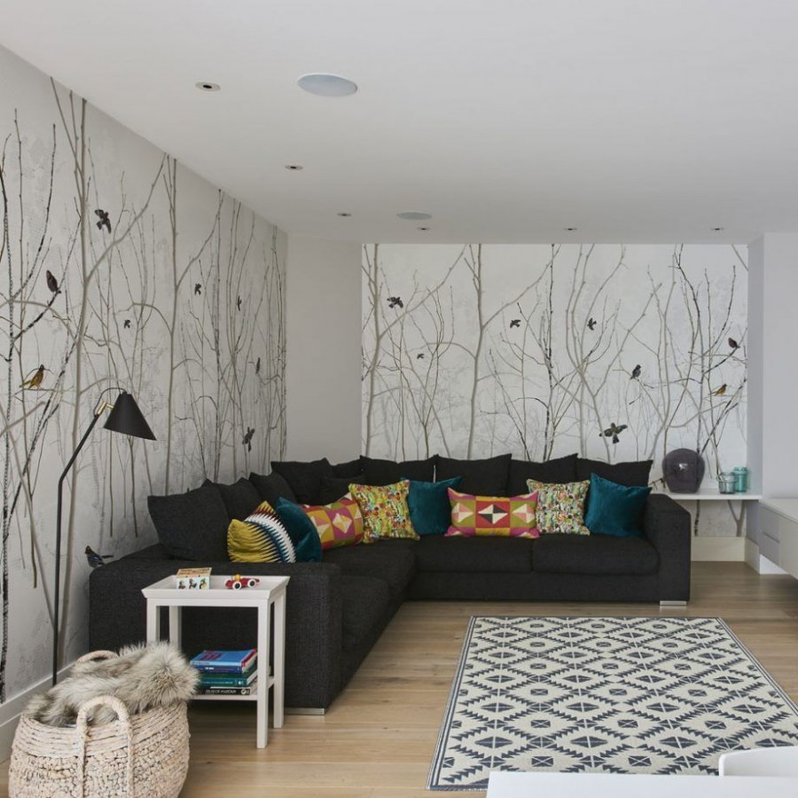 Комбинация обоев в интерьере гостиной