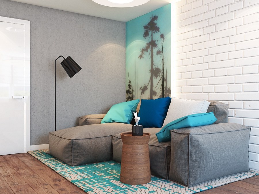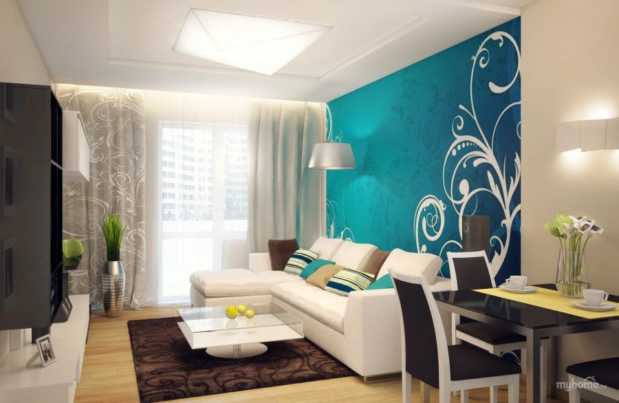 Интерьер гостиной 16 кв.м бирюзовый