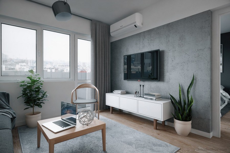Однокомнатная квартира в серо белых тонах