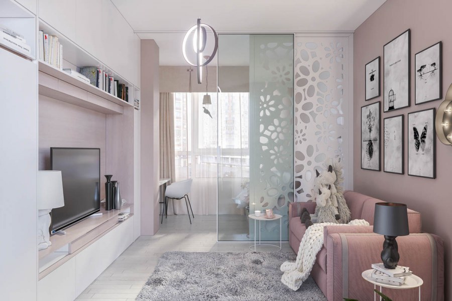 Интерьер однокомнатной студии с зонированием