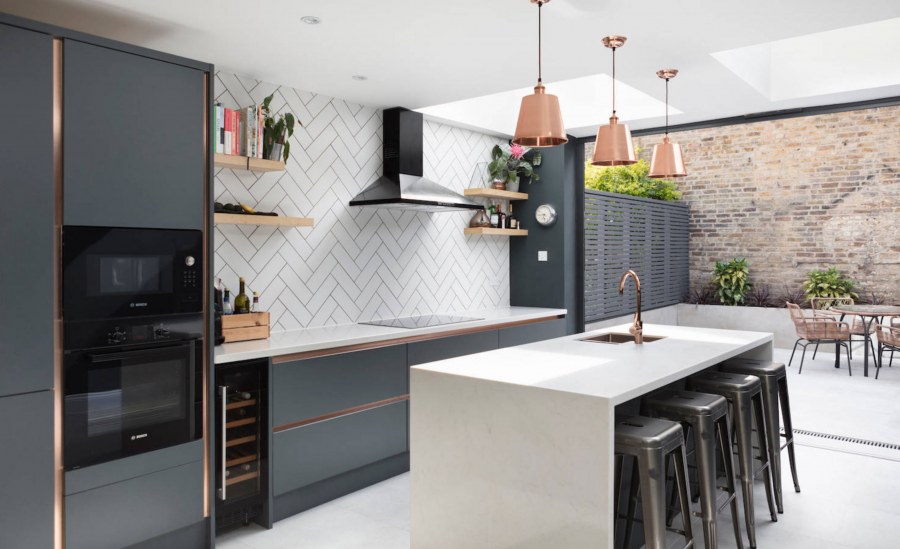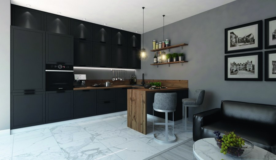 Современная кухня без верхних шкафов