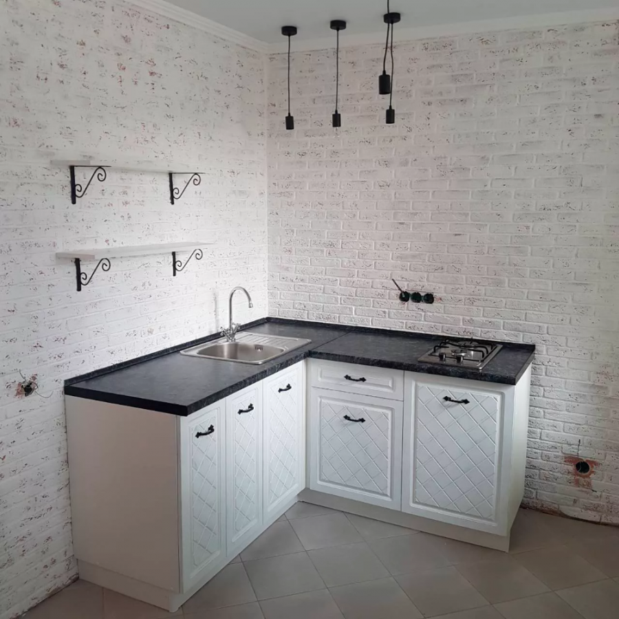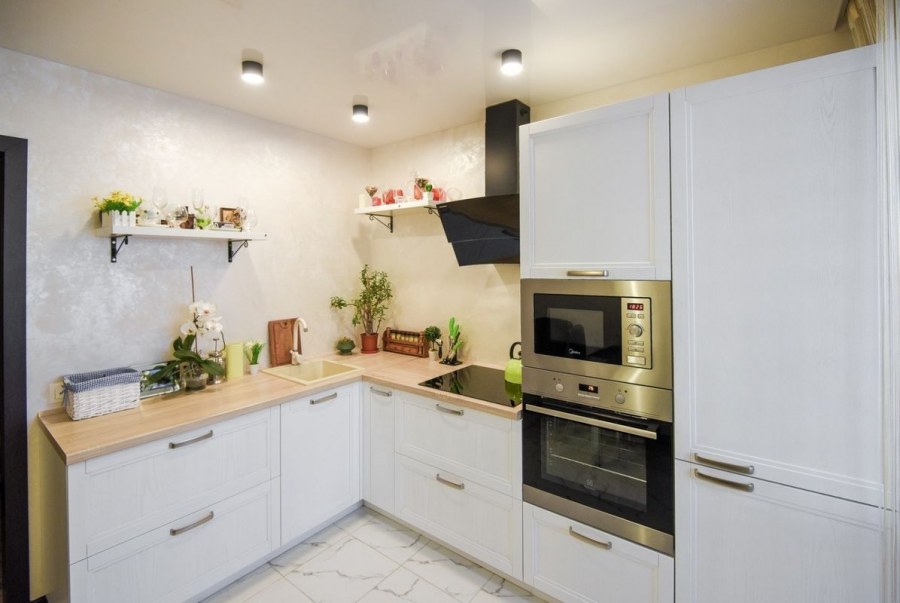 Угловая кухня без верхних шкафов