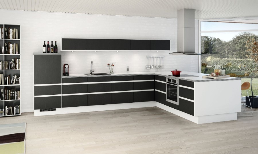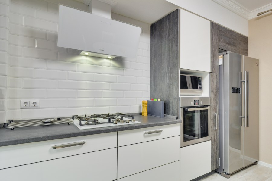 Кухня прямая современная вытяжка