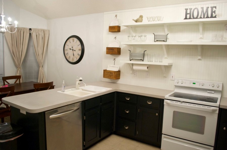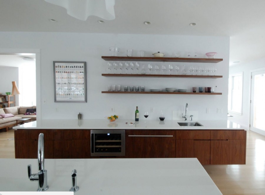 Кухонные гарнитуры без верхних шкафов с полками