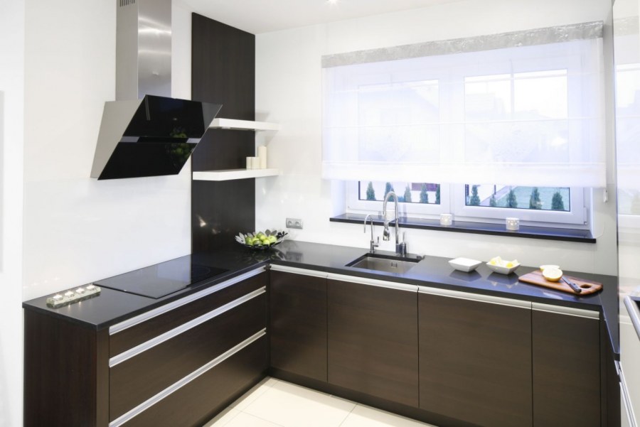 Кухня с вытяжкой без верхних шкафов