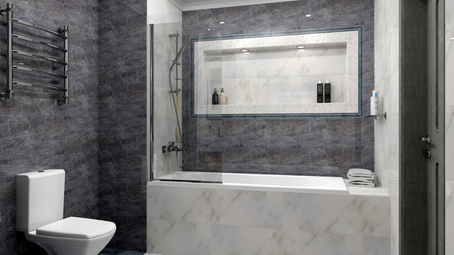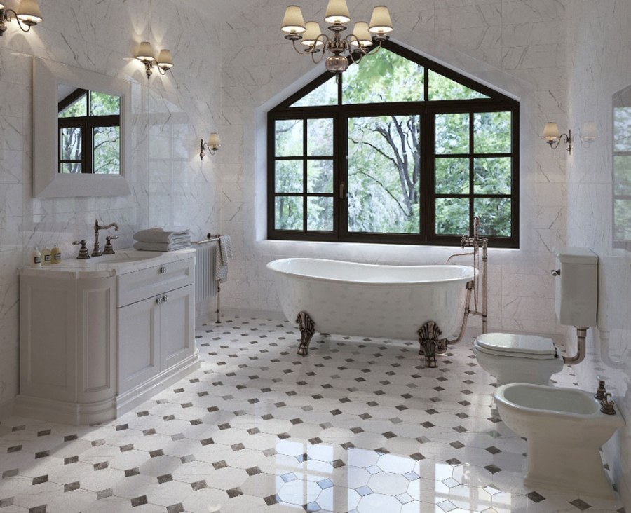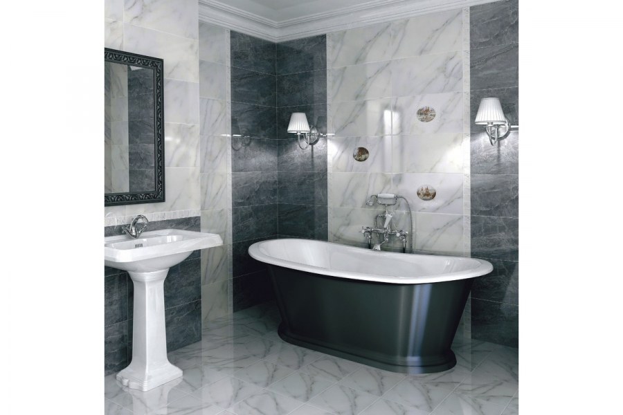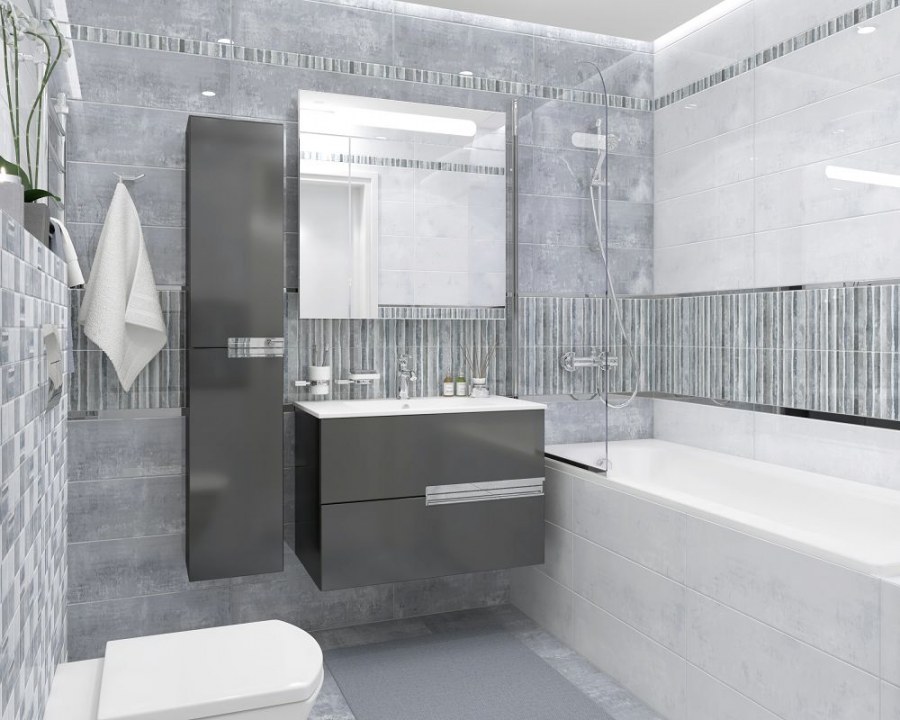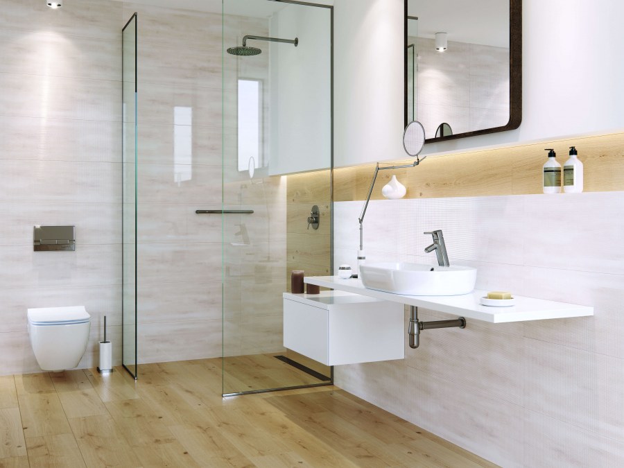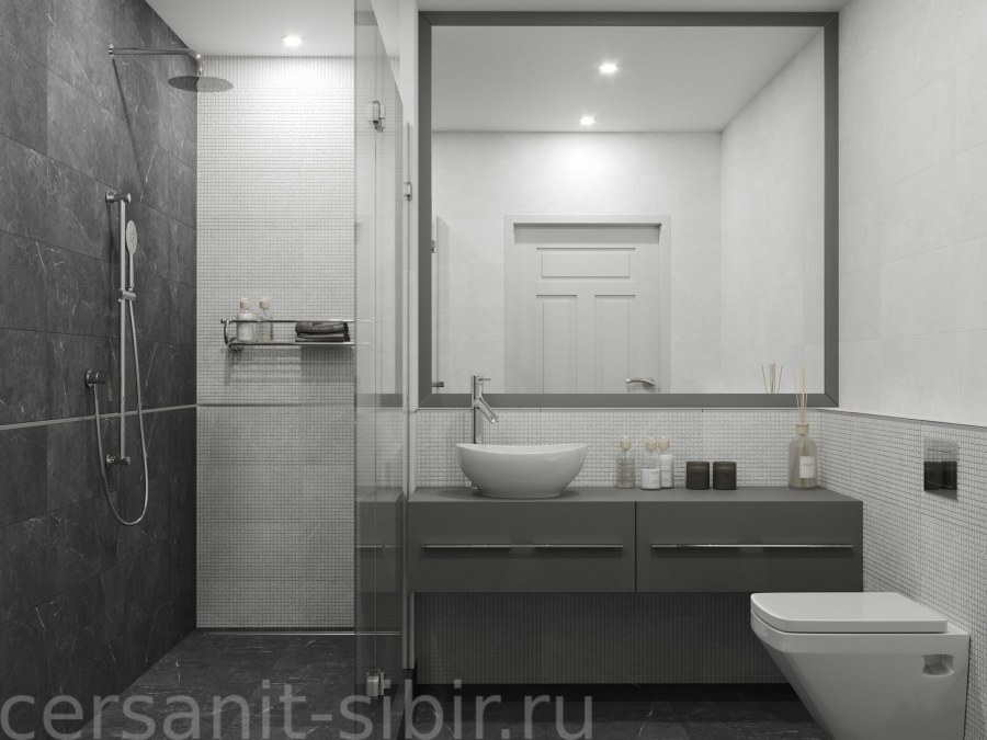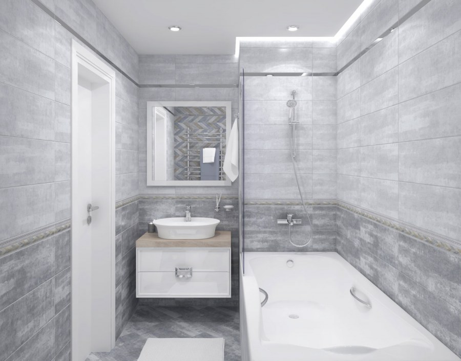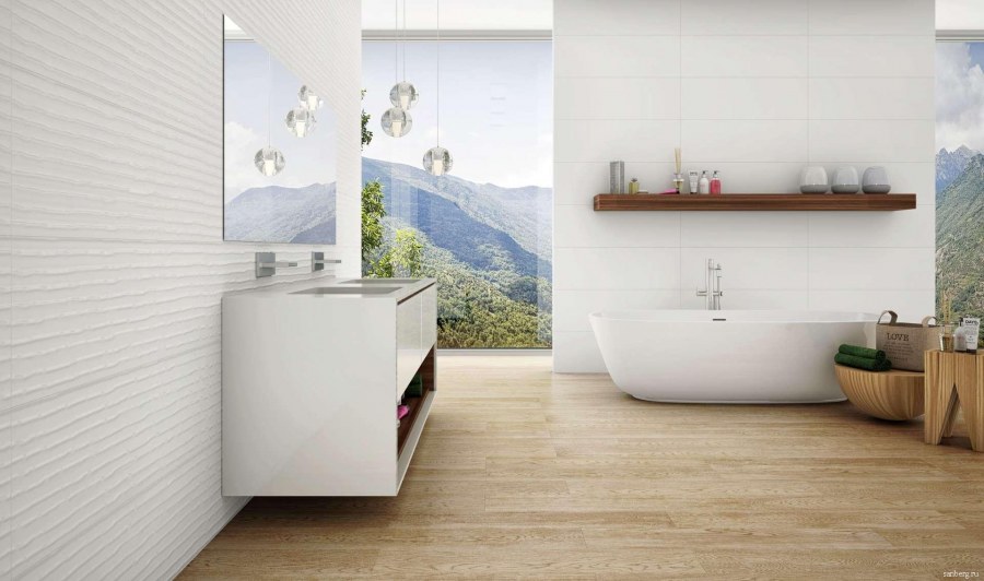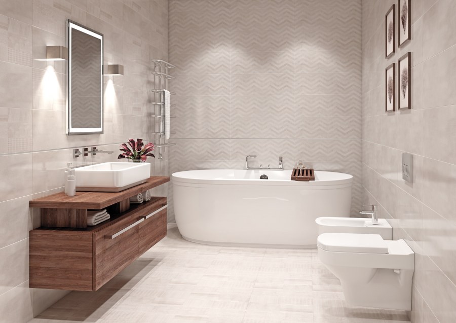 Дизайн ванной комнаты светлый керамогранит (72 фото)