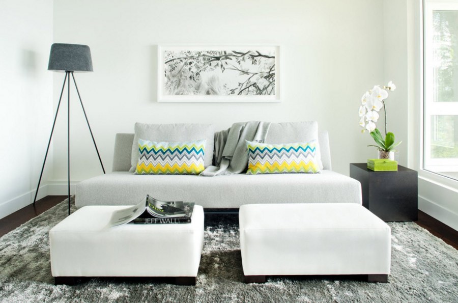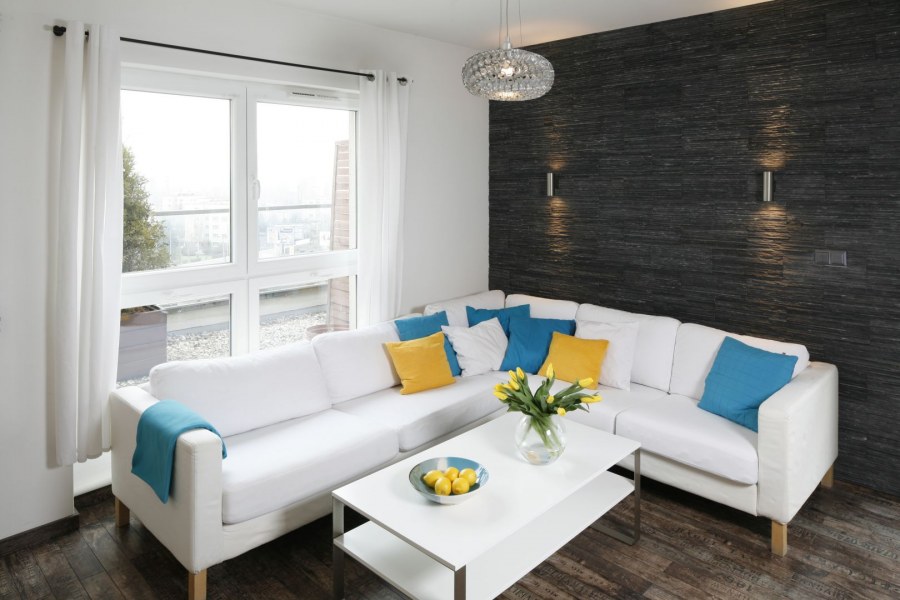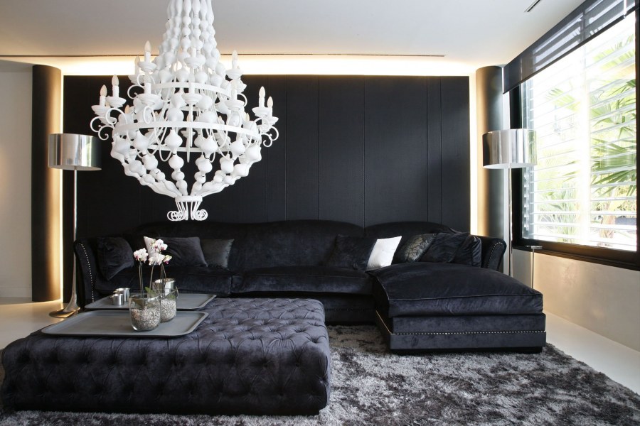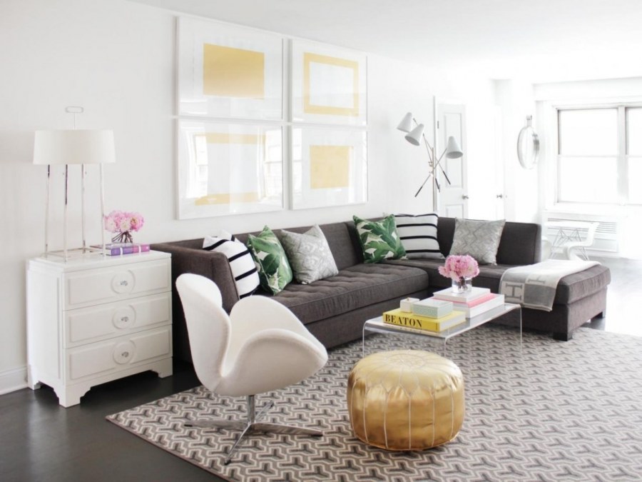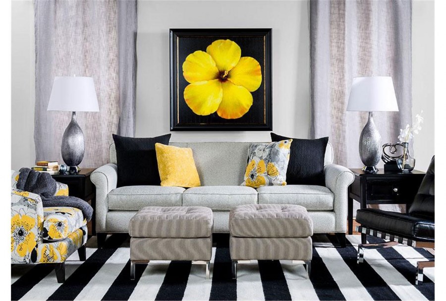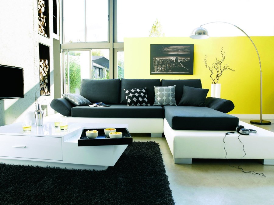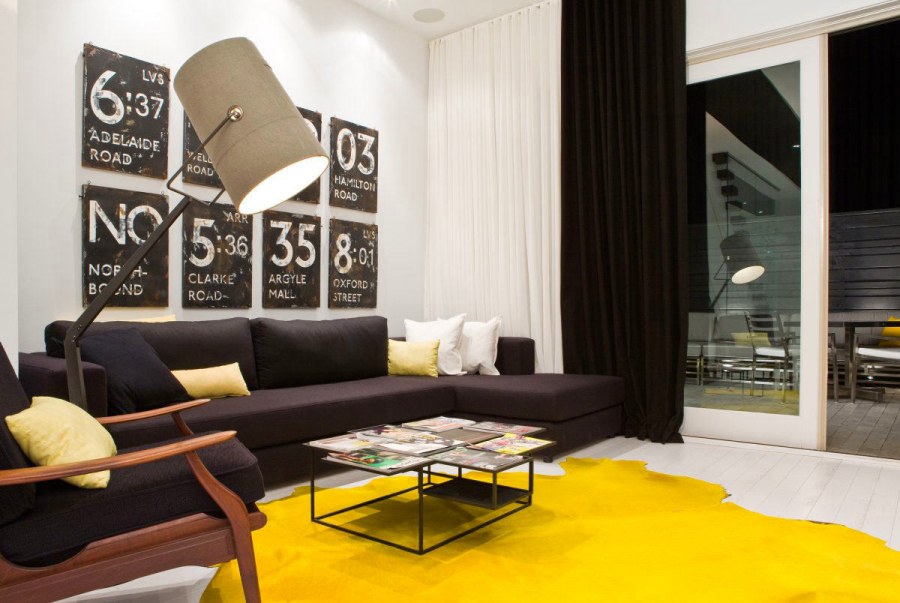 Интерьеры гостиной в чёрно-жёлтых тонах
