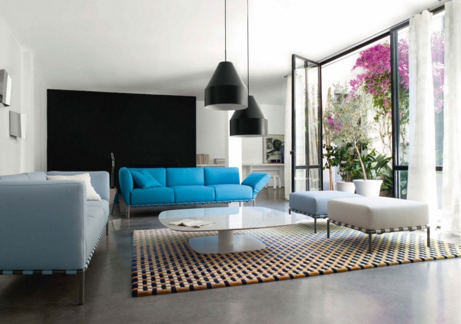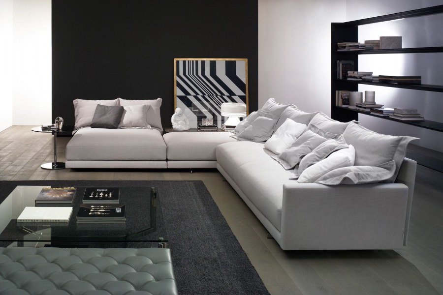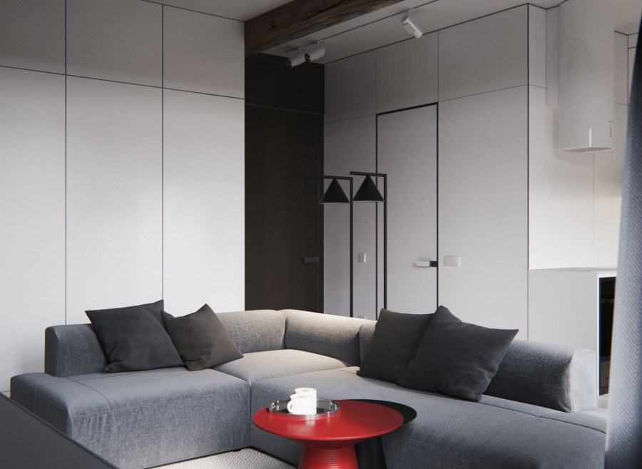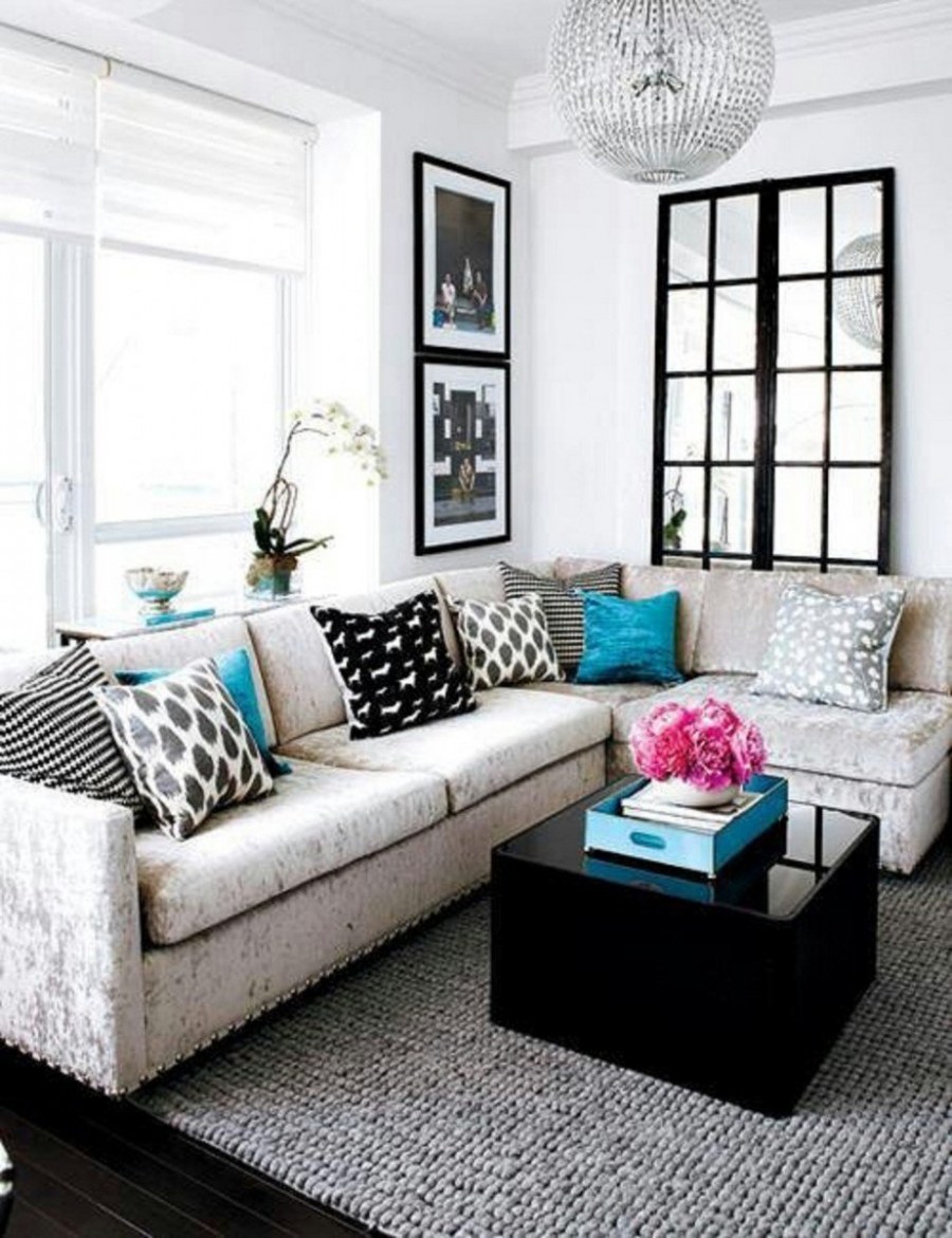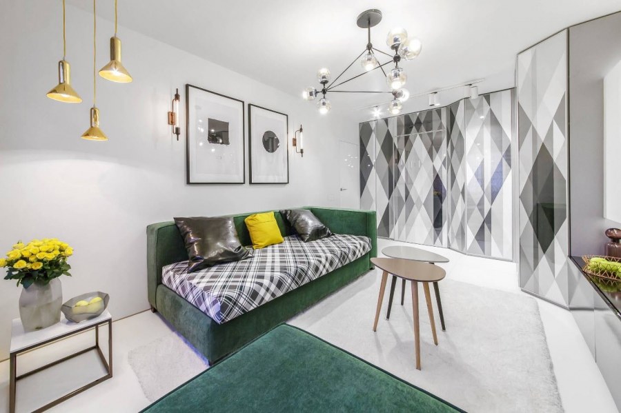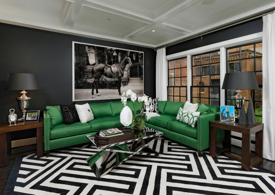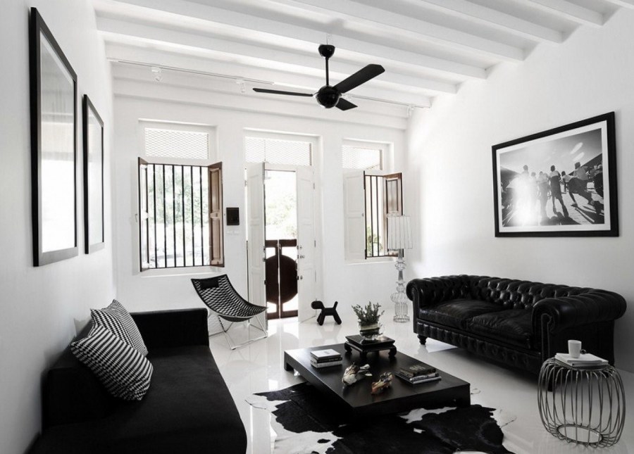 Интерьеры гостиной в чёрно-жёлтых тонах