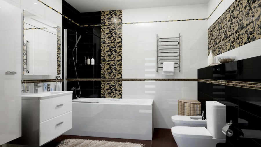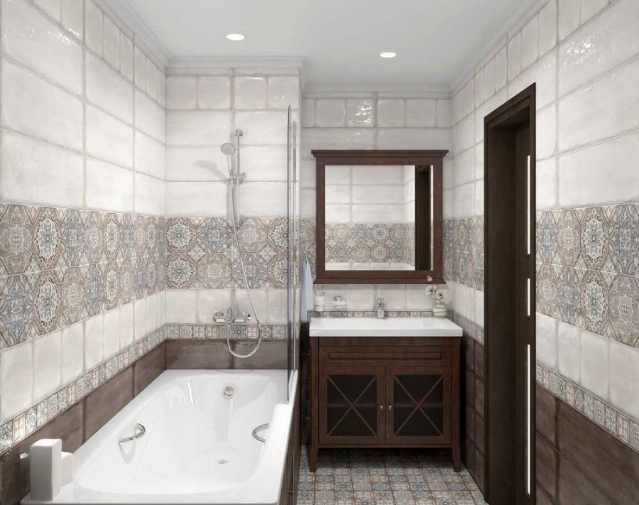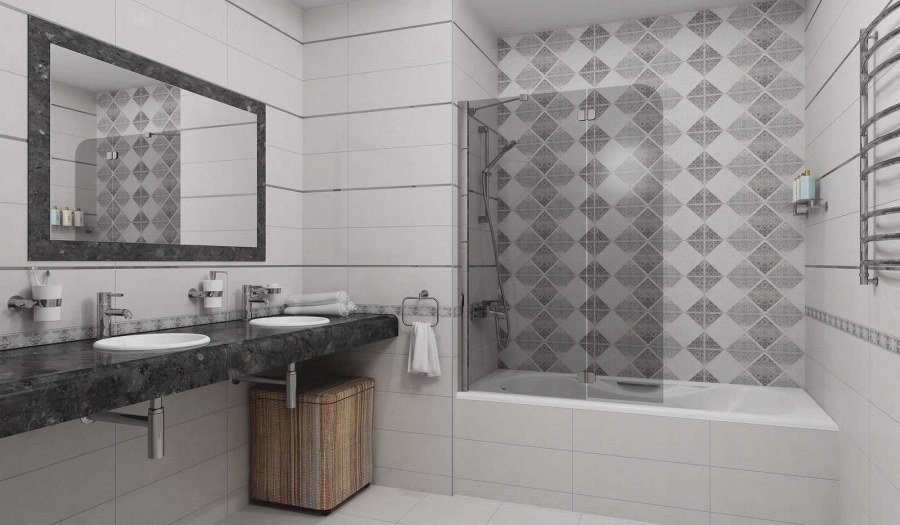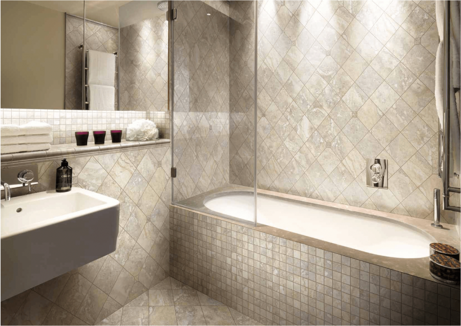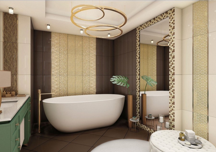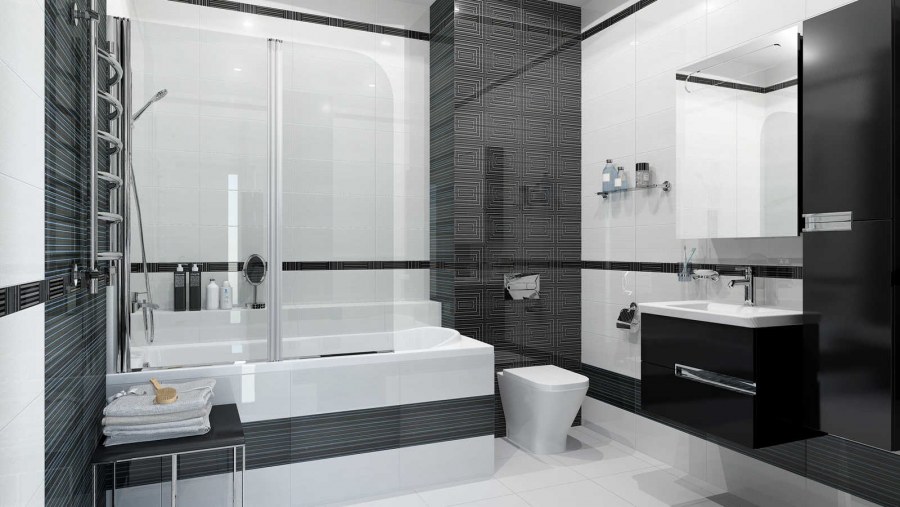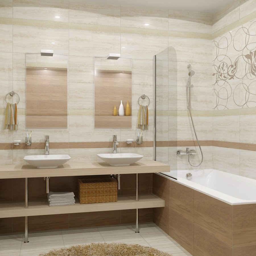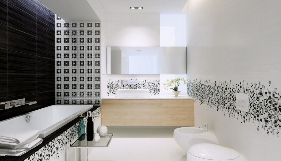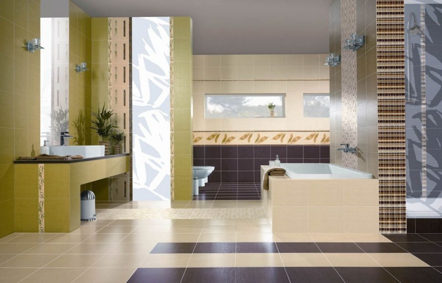 Образцы ванных комнат выложенных кафелем современный стиль (70 фото)