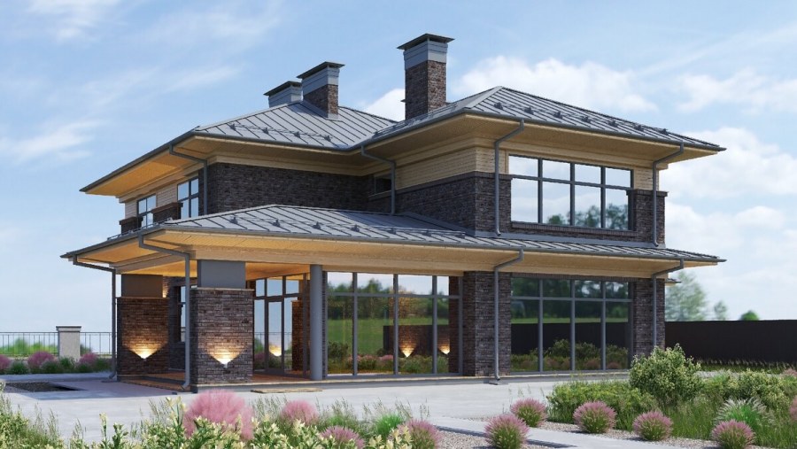 Дом с панорамными окнами двухэтажный