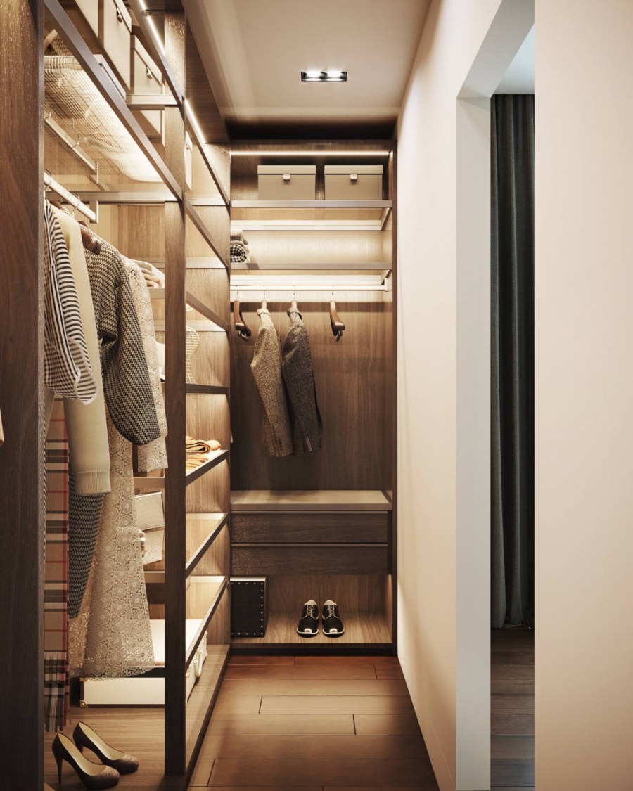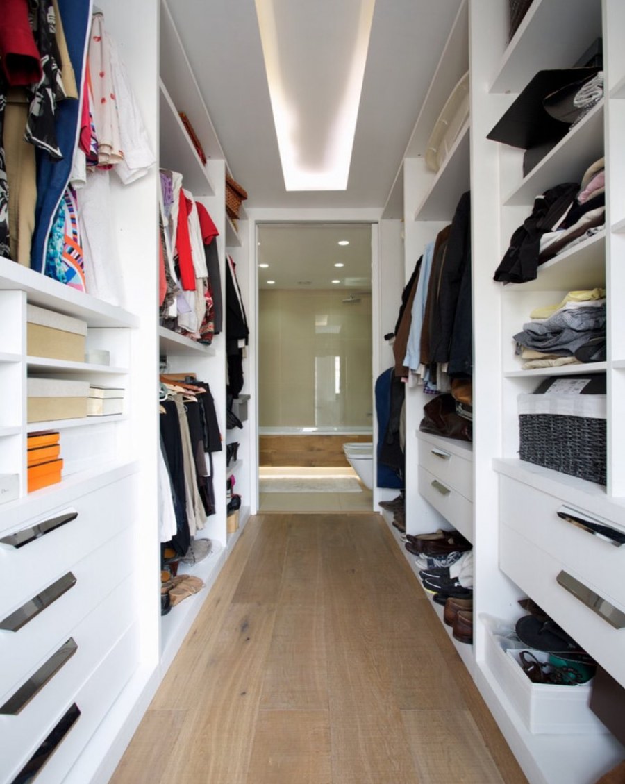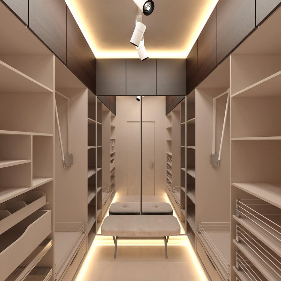 Интерьер узкой длинной гардеробной фот (59 фото)