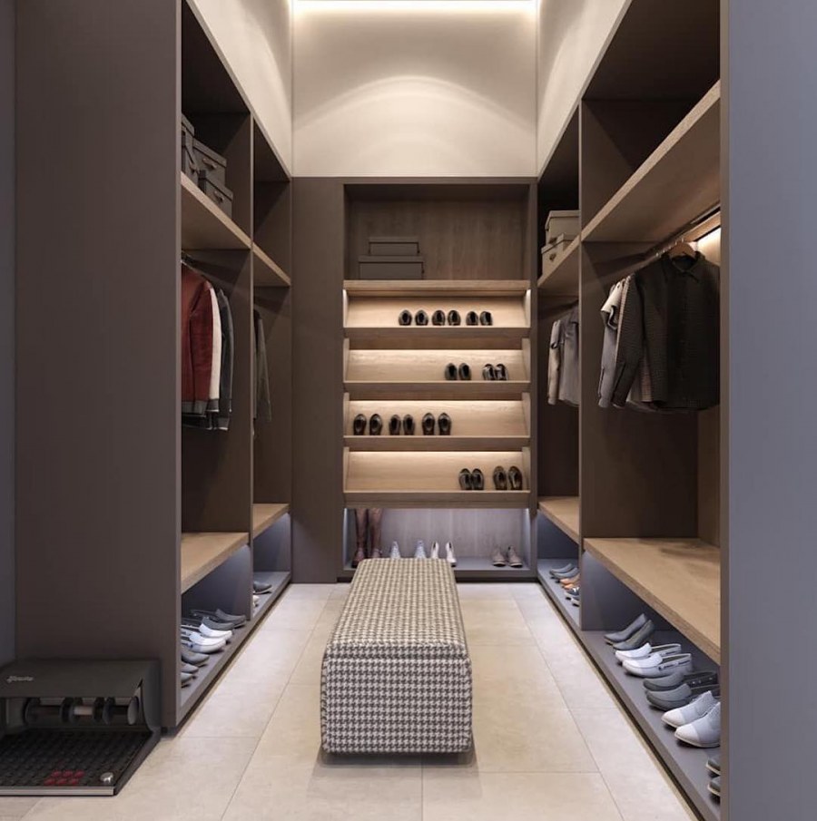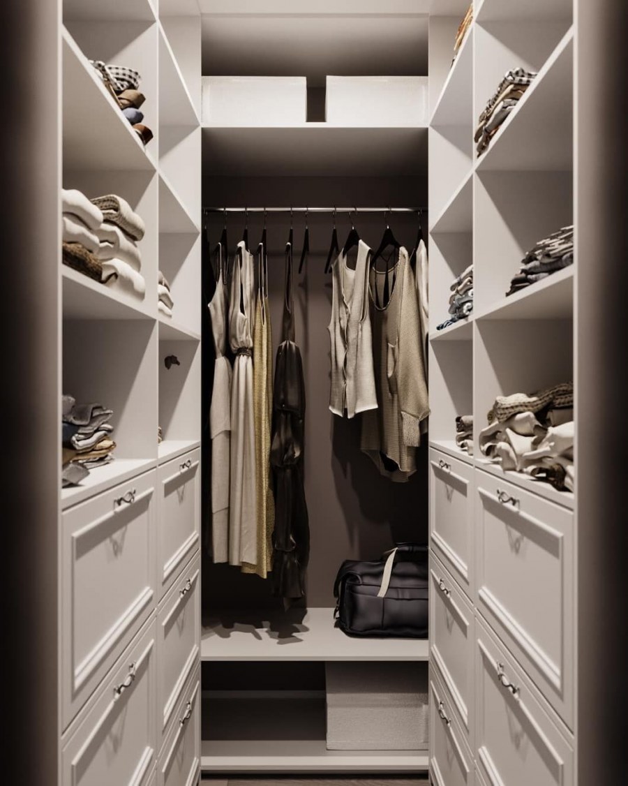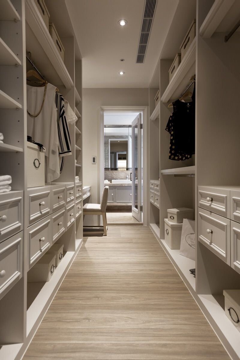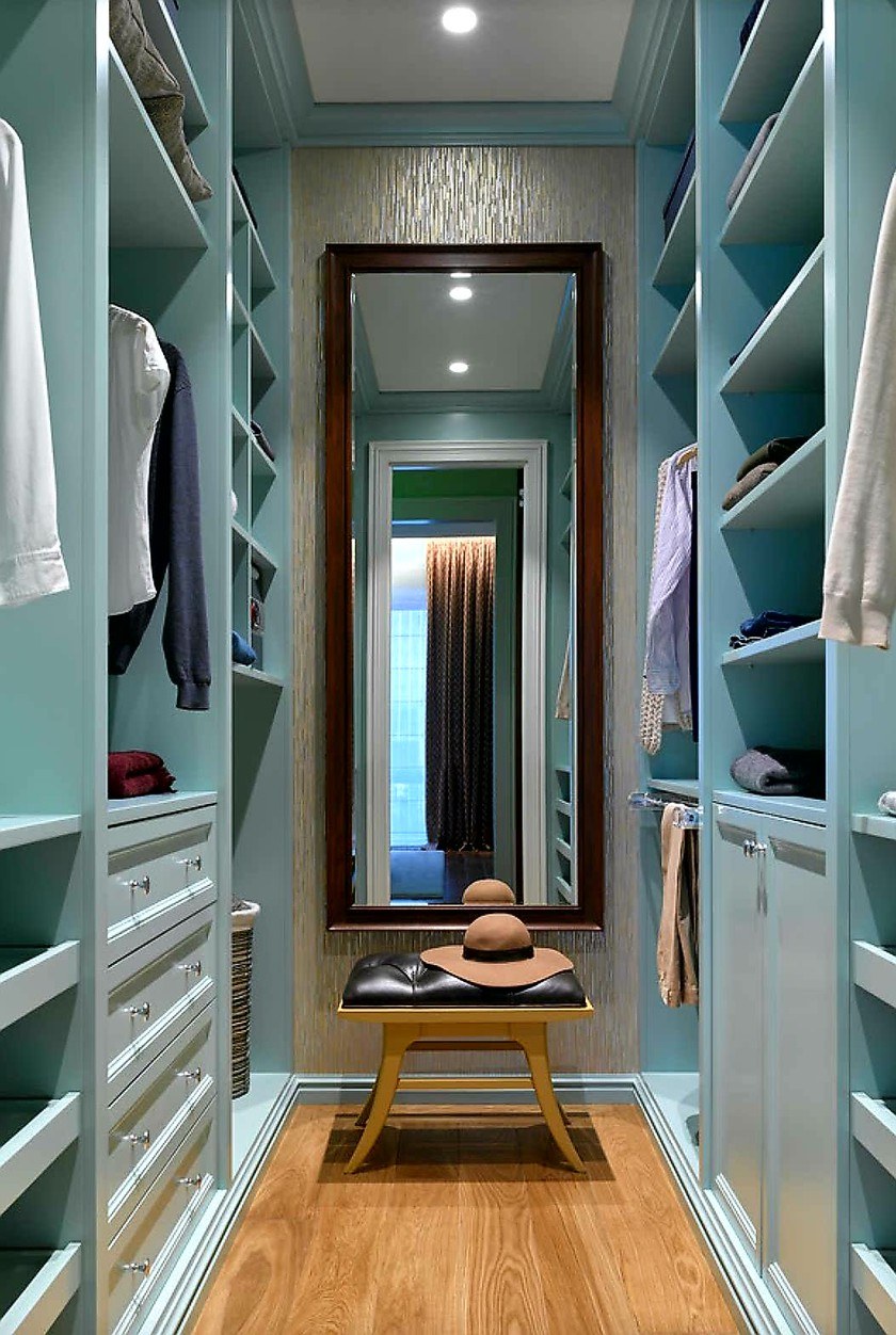 Интерьер узкой длинной гардеробной фот (59 фото)