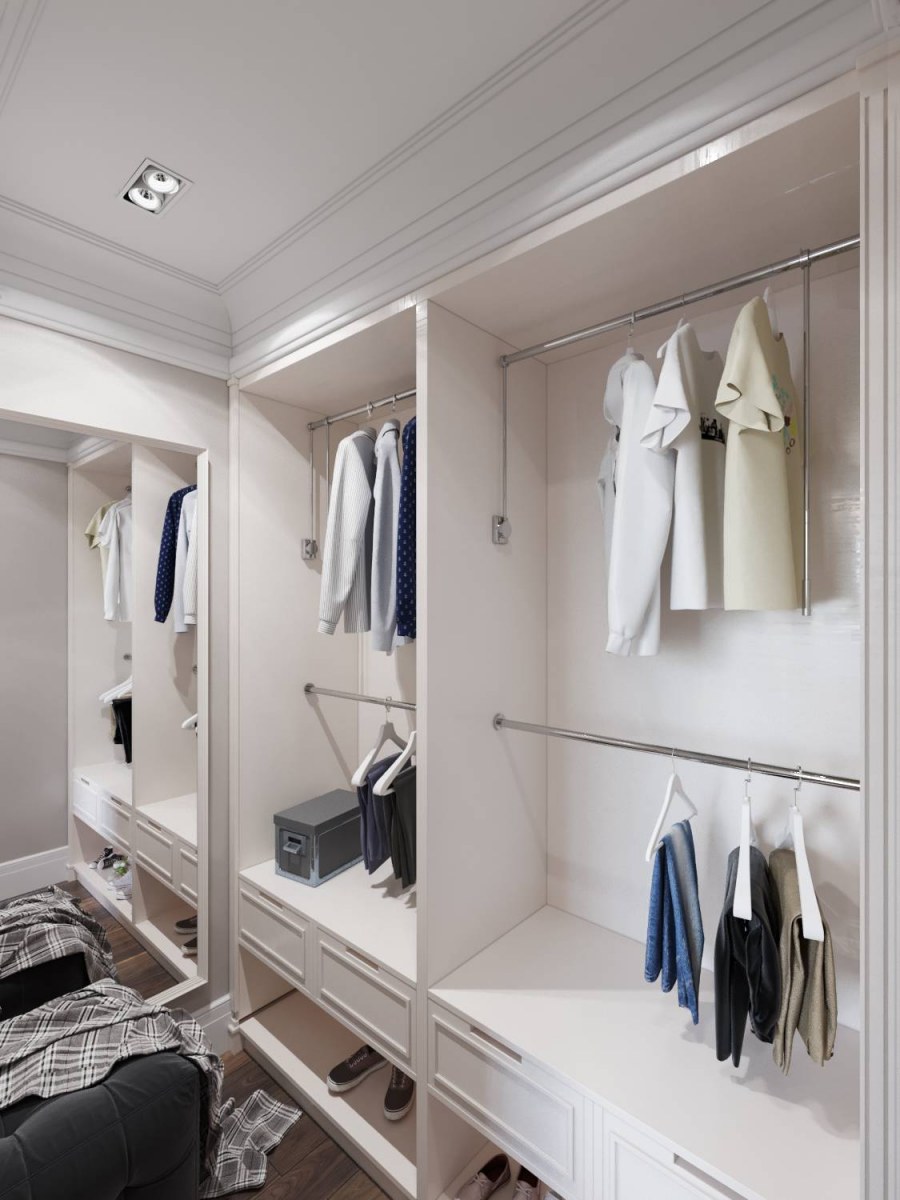 Гардеробная комната узкая и длинная 90см