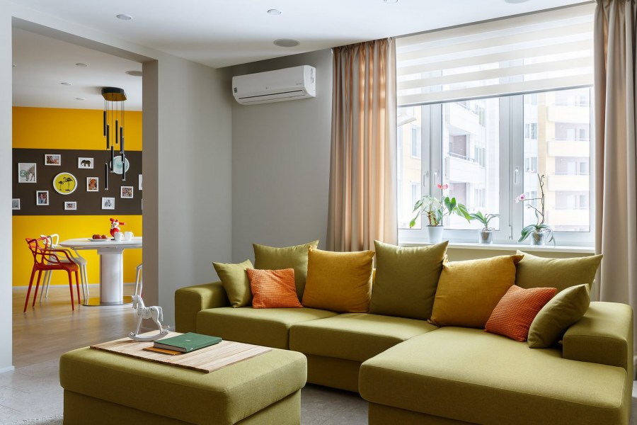 Гостиная с желтыми акцентами