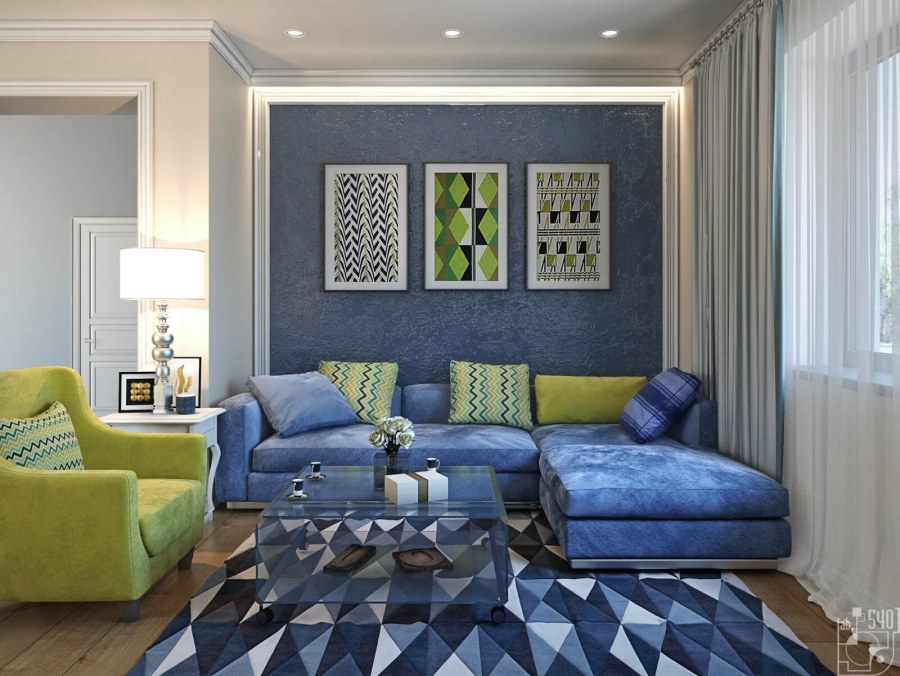 Синий диван в интерьере