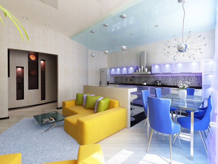 Кухня гостиная в ярких тонах