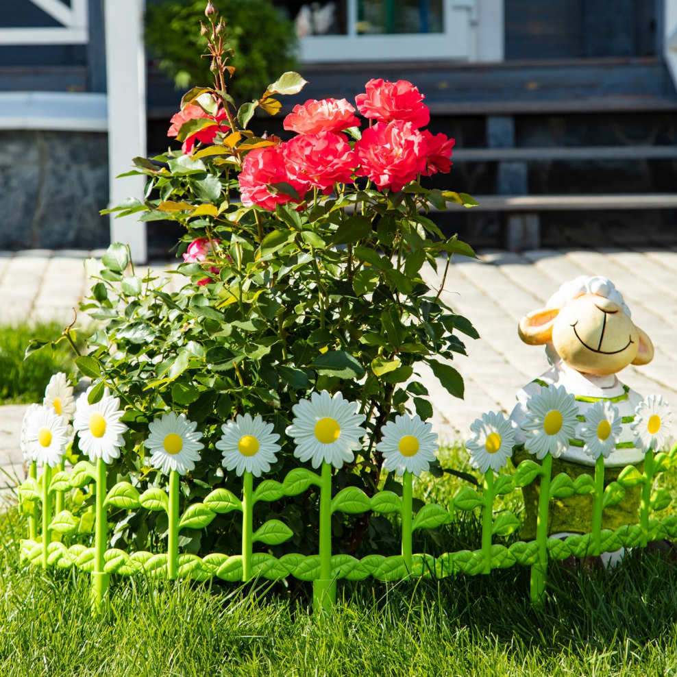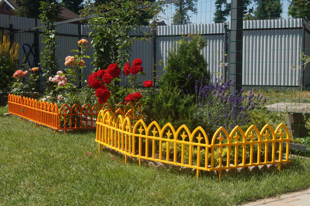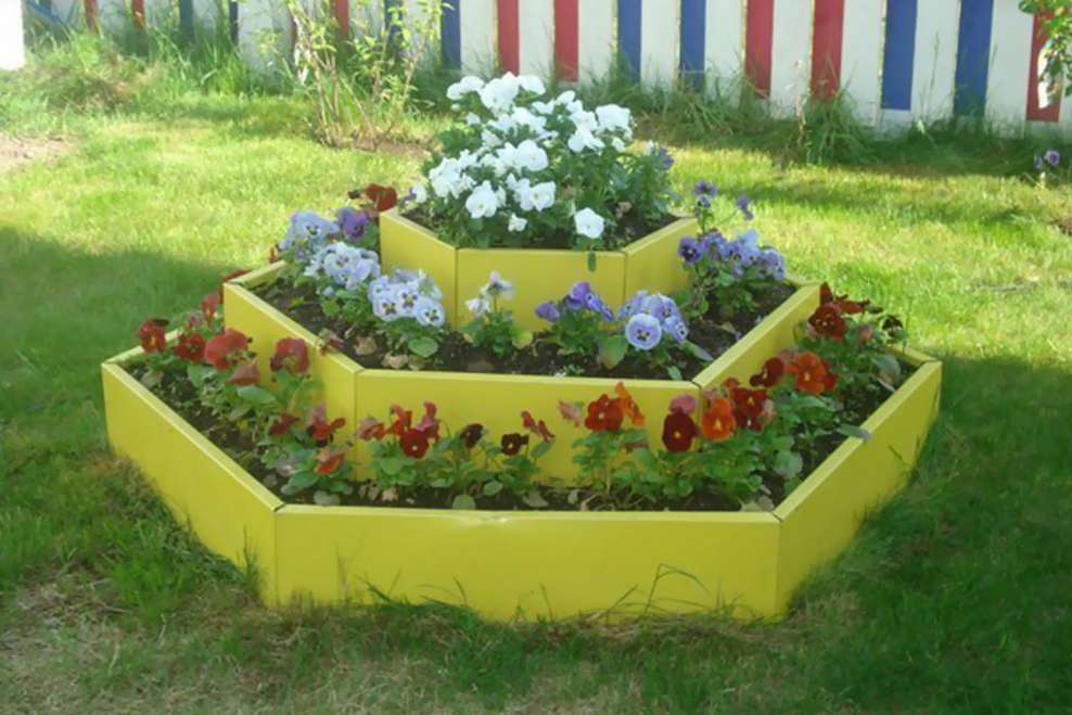 Ограждения из пластиковых ящиков в цветнике (30 фото)