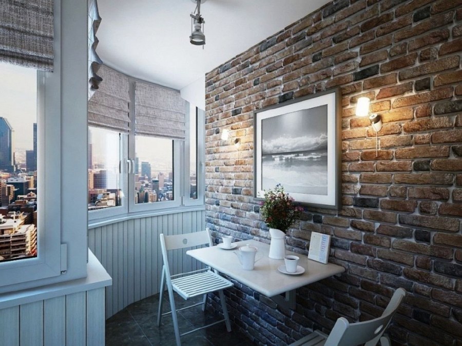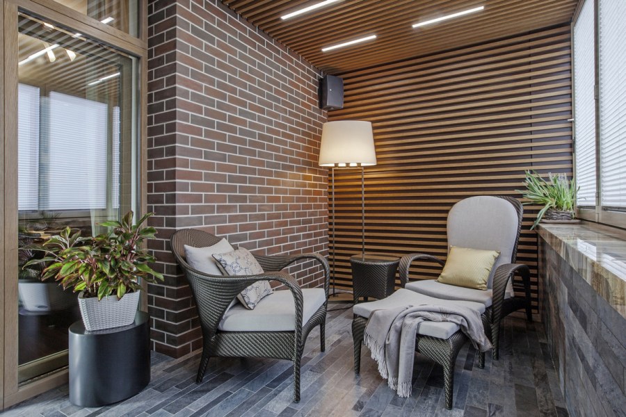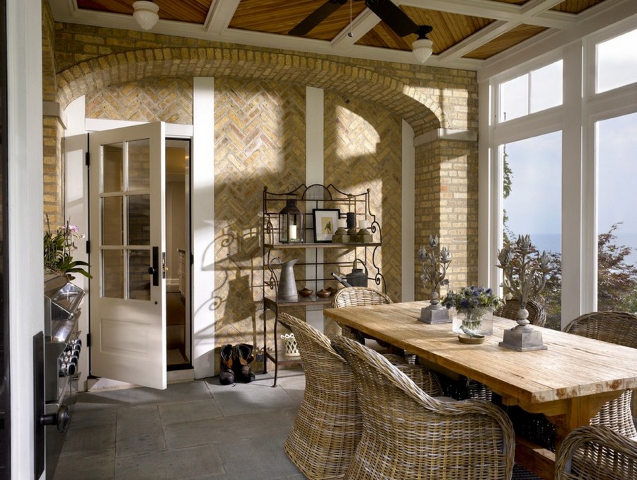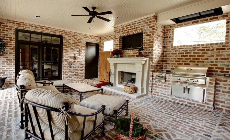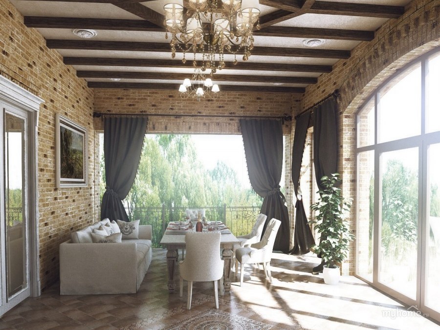 Отделка декоративным кирпичом внутри террасы в интерьере (70 фото)