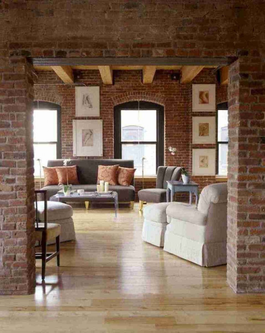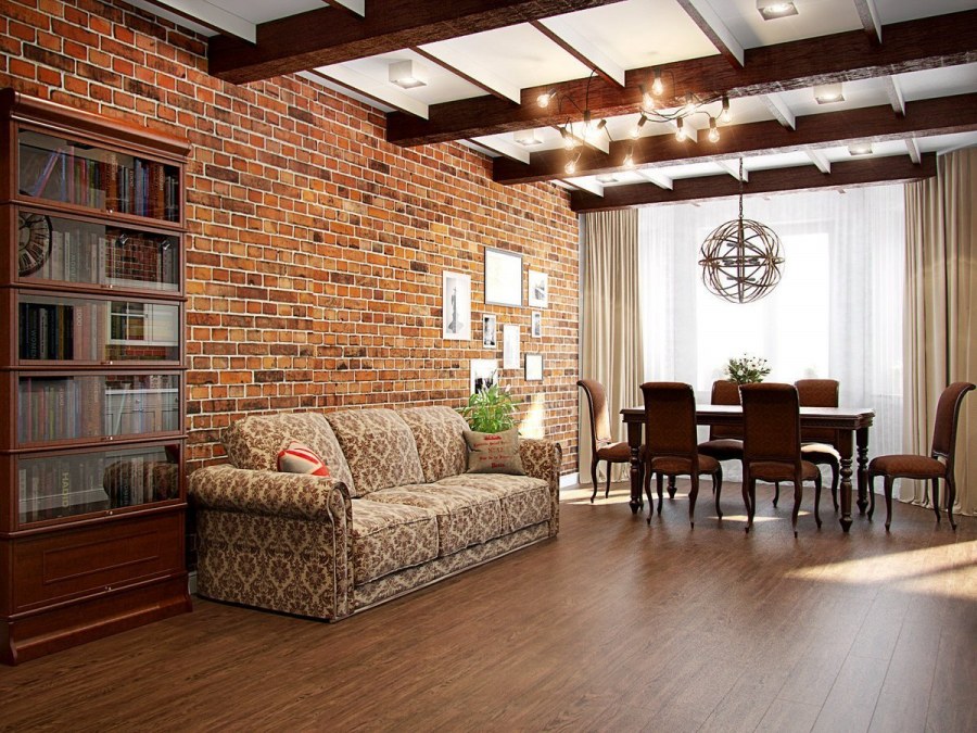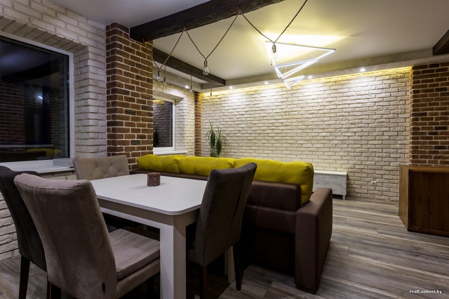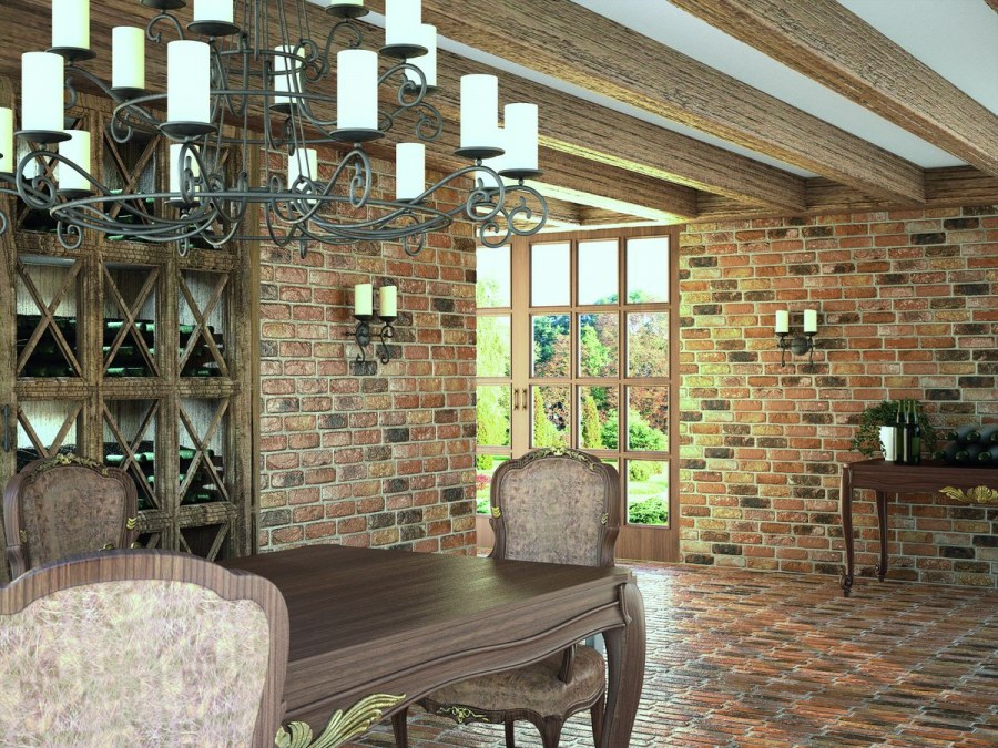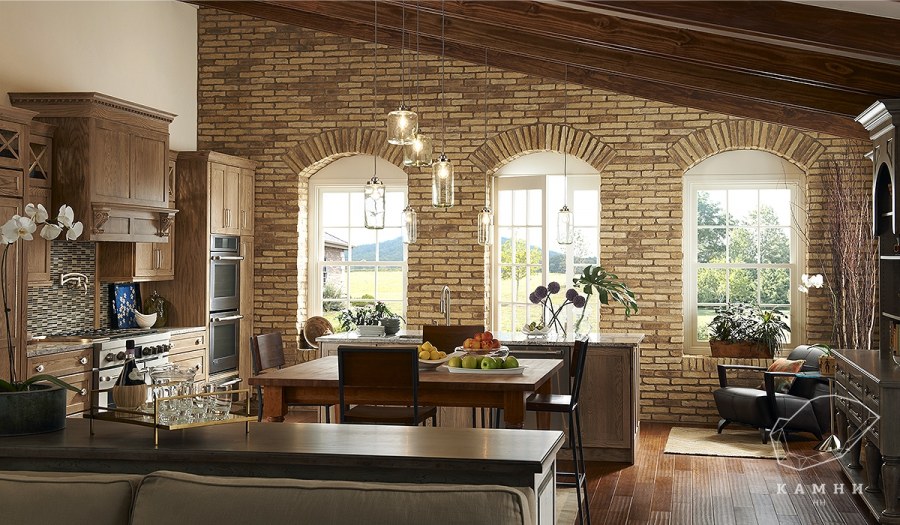 Отделка декоративным кирпичом внутри террасы в интерьере (70 фото)