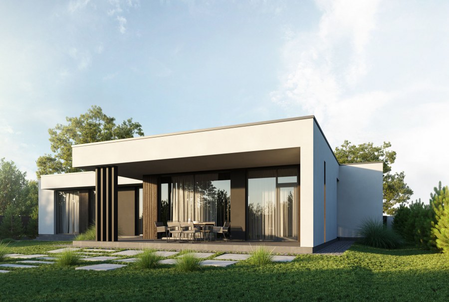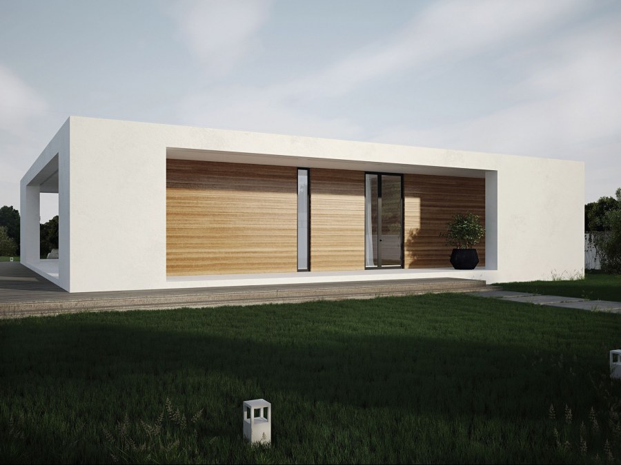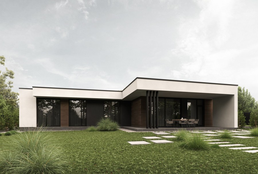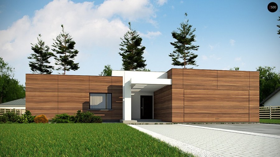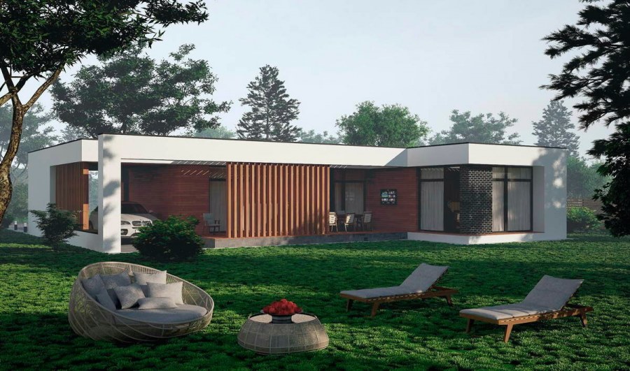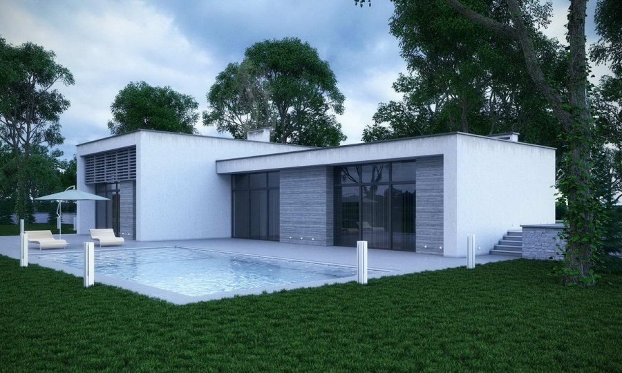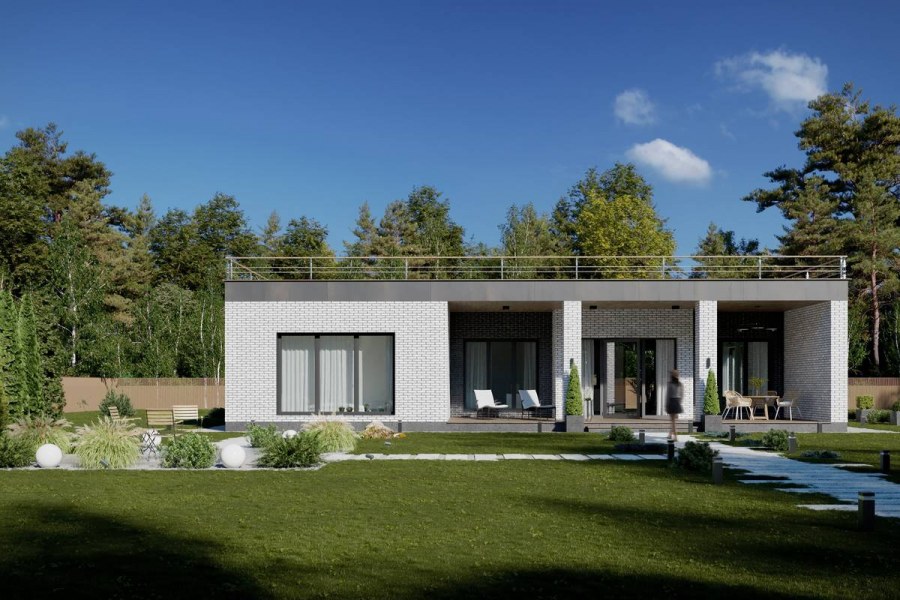 Одноэтажный дом с плоской крышей в стиле Минимализм