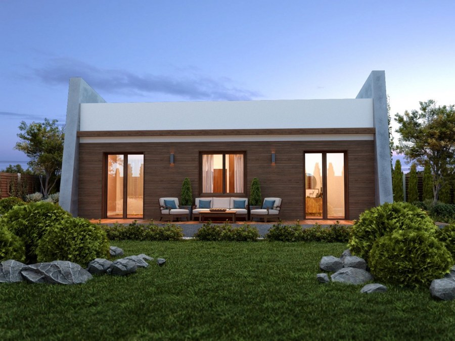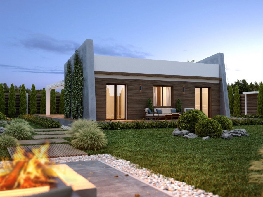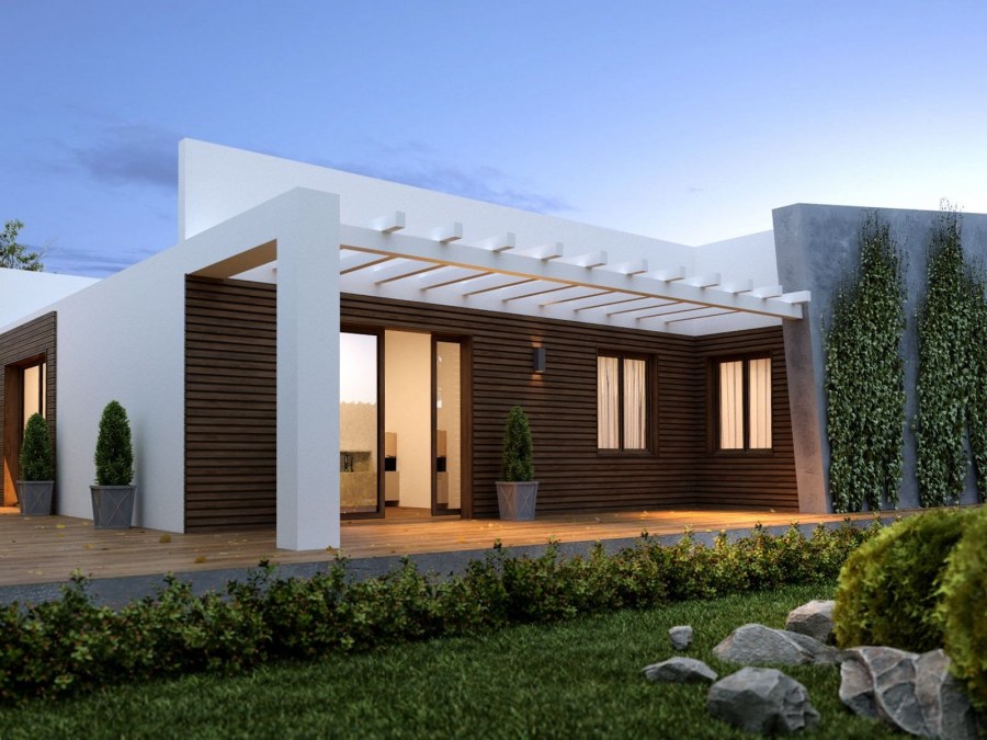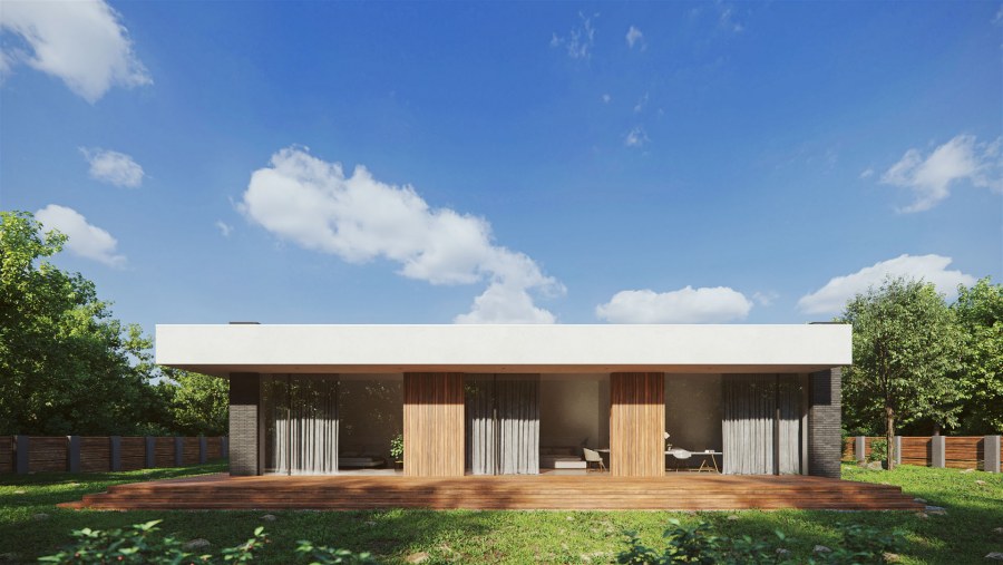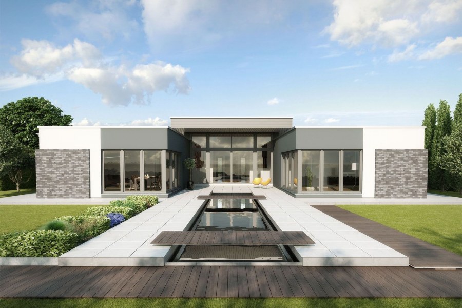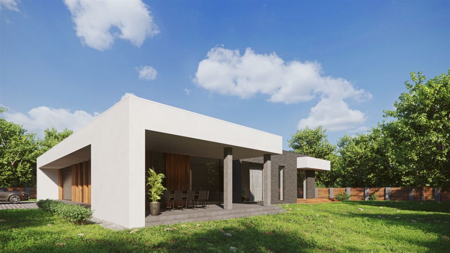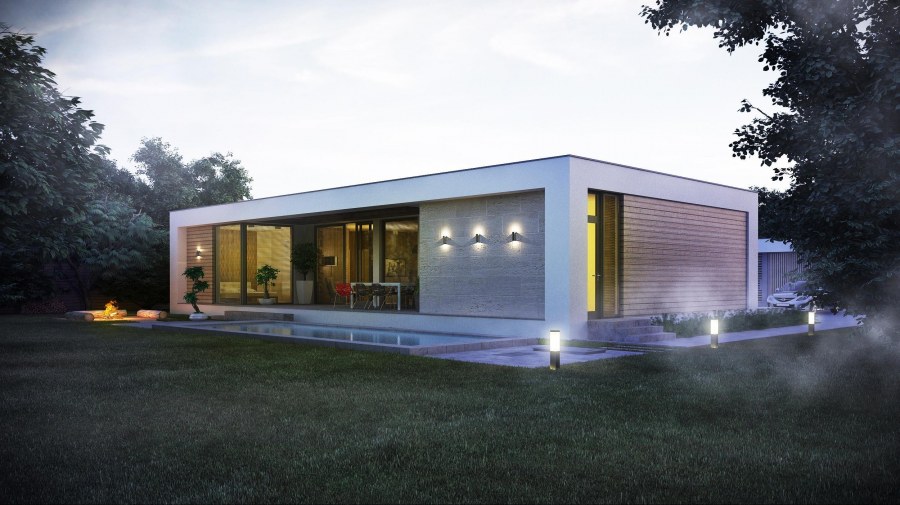 Одноэтажный дом с плоской крышей в стиле Минимализм