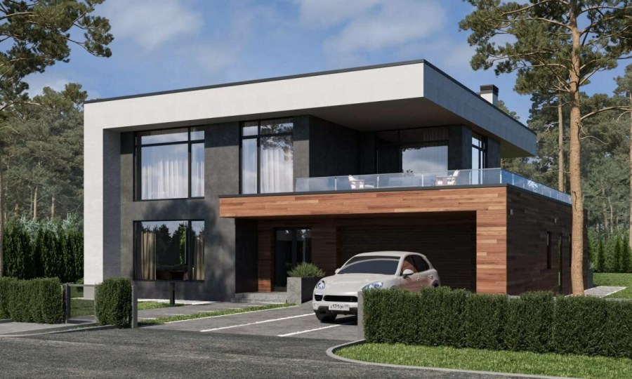 Проект дома в стиле минимализм с плоской крышей (74 фото)